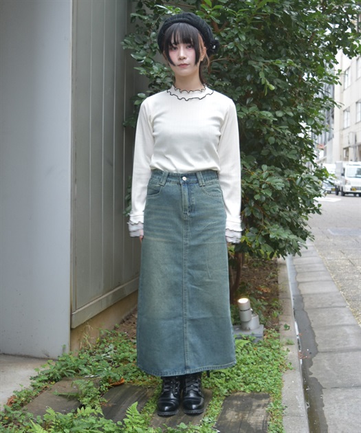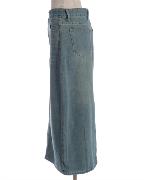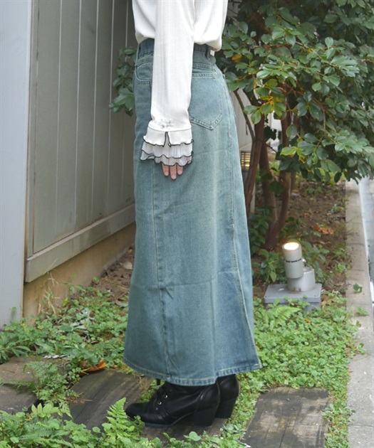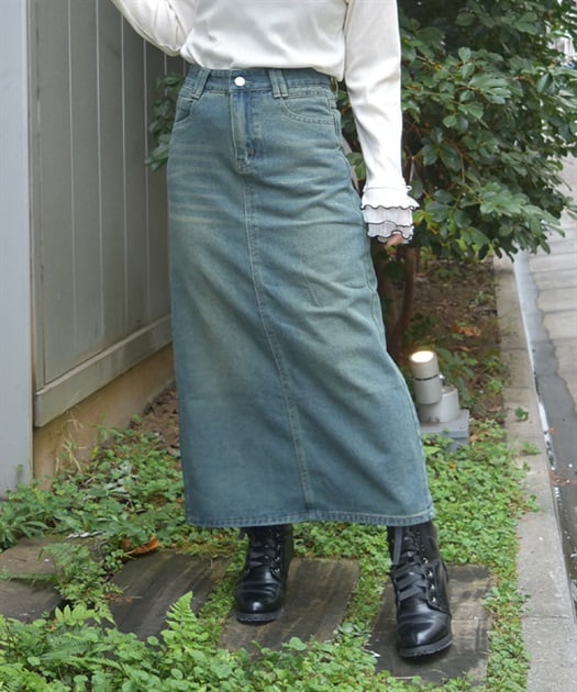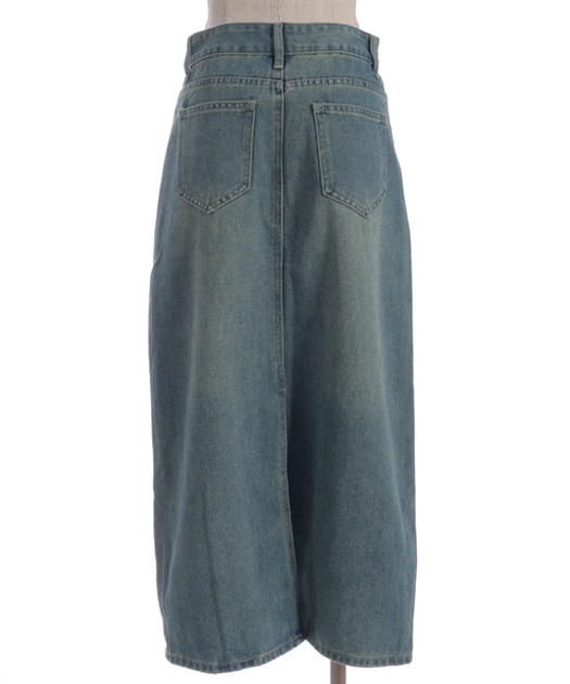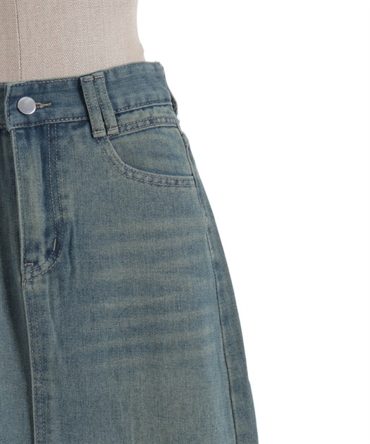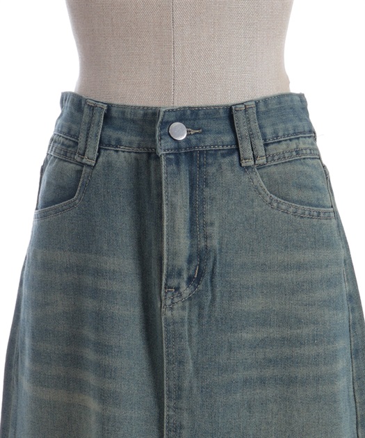 すっきりとしたIラインシルエットが魅力のデニムスカート。