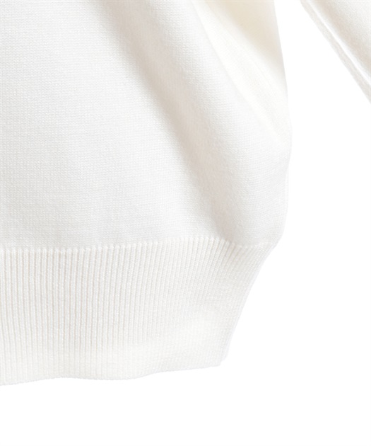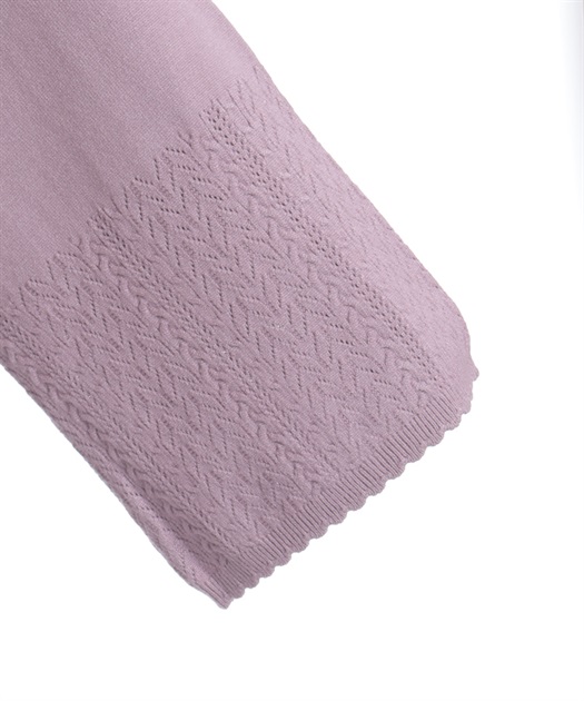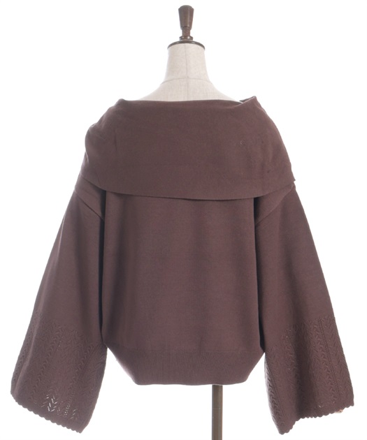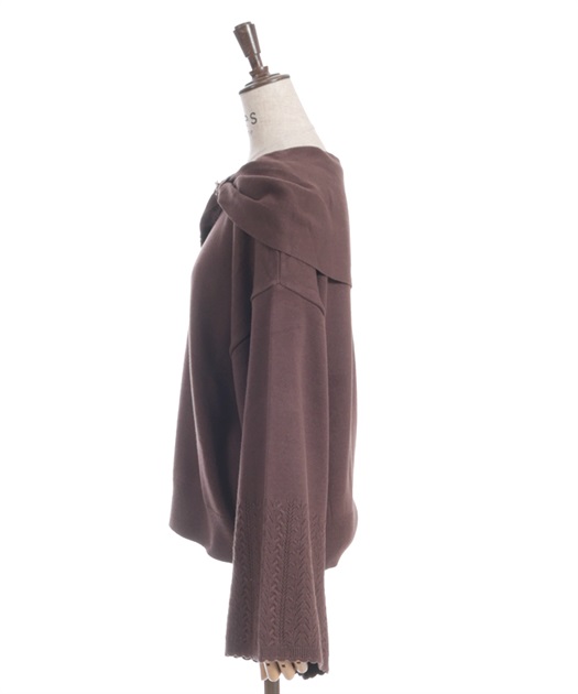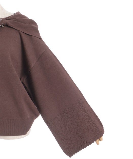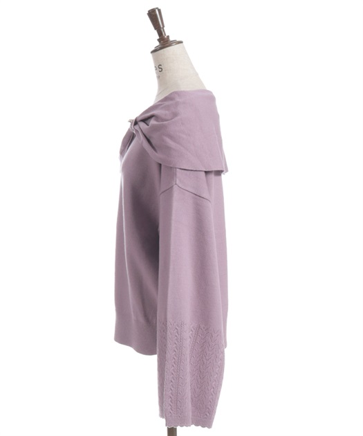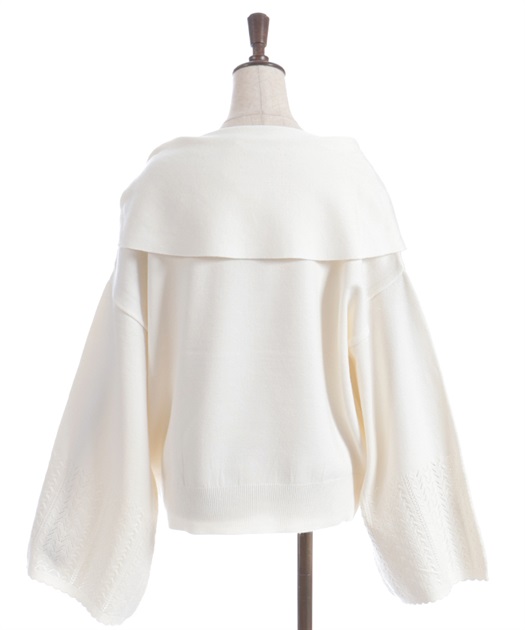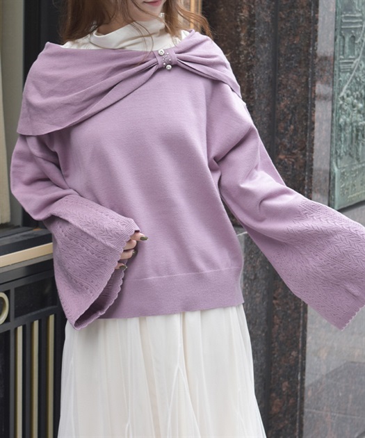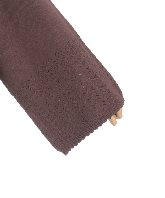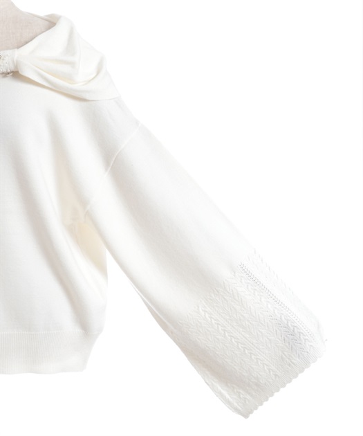 ケーブル柄をあしらったフレアスリーブがフェミカジな印象に。