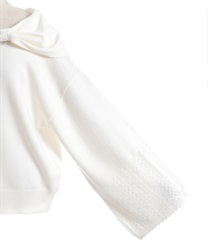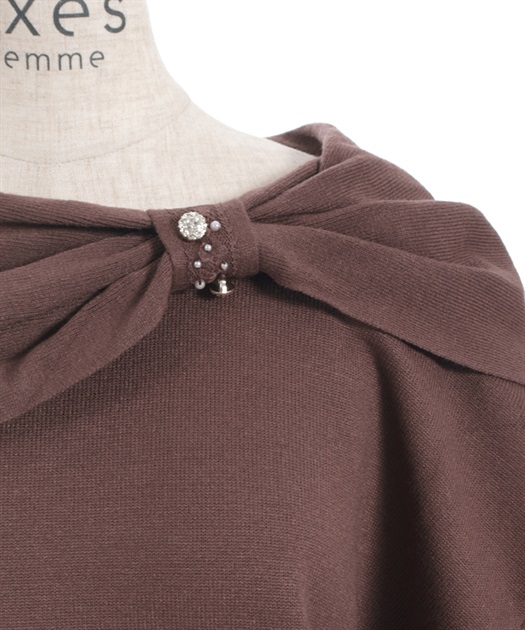 ギャザー分量をたっぷりあしらったリボンがポイントのニットです。