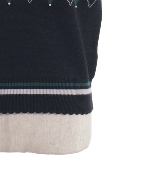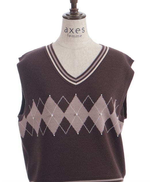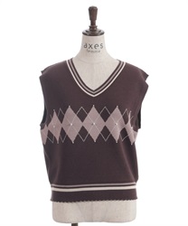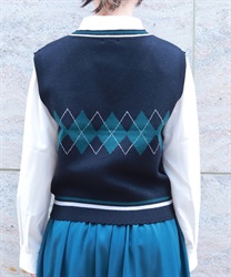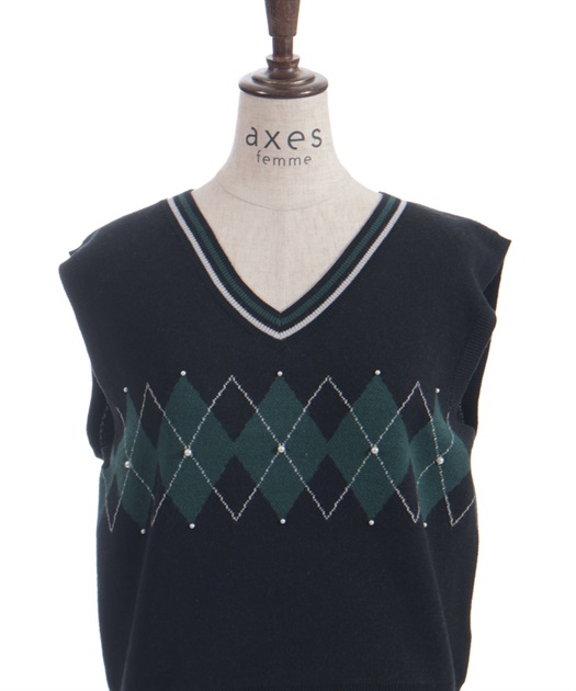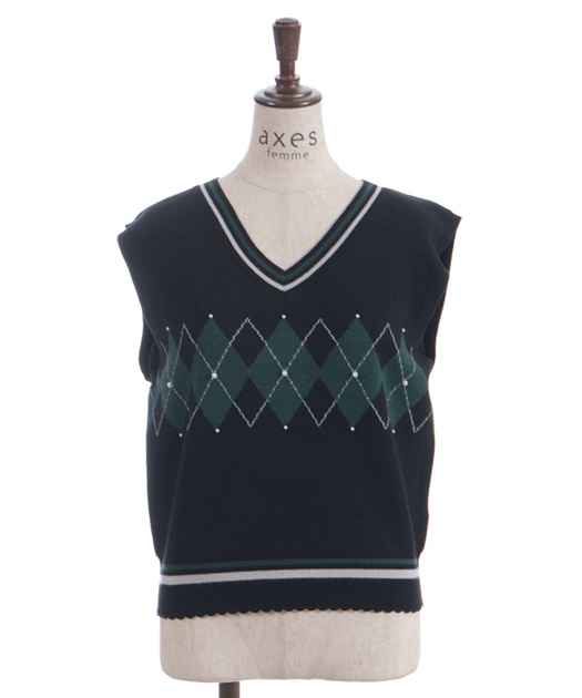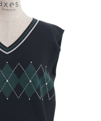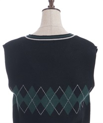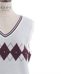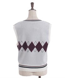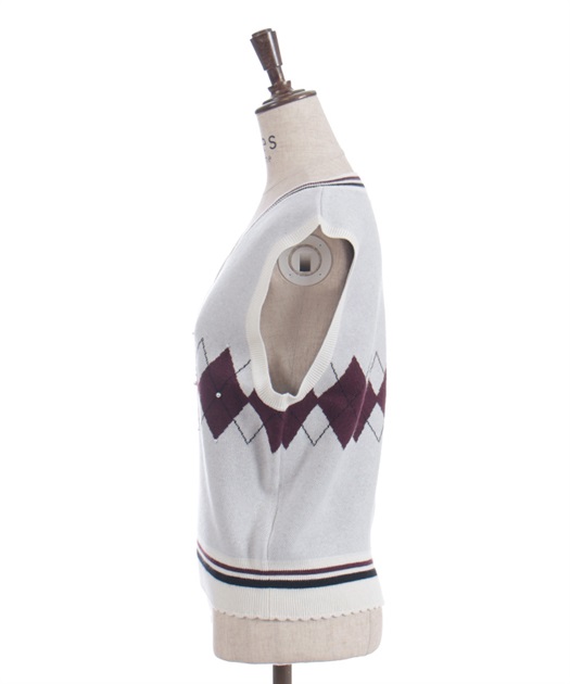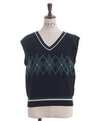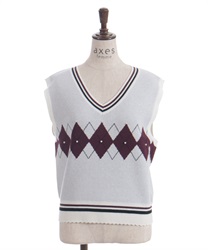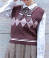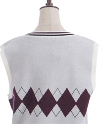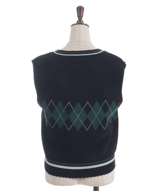 プレッピーな雰囲気漂うアーガイル柄のニットベスト。