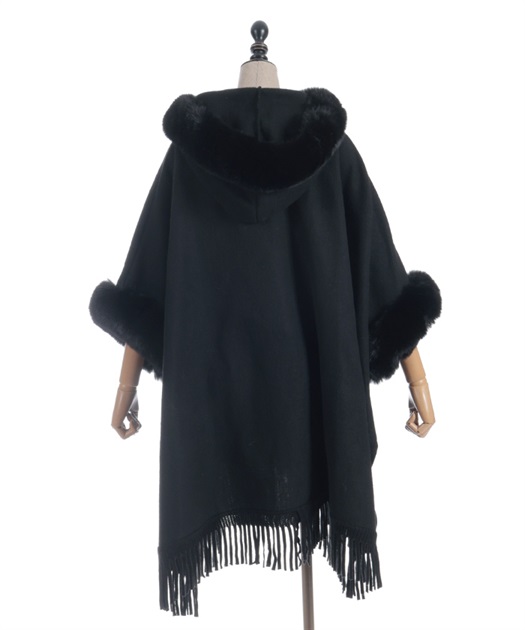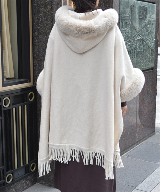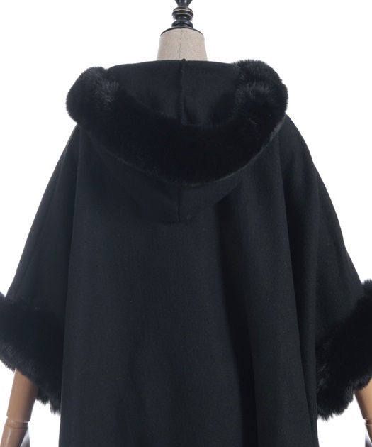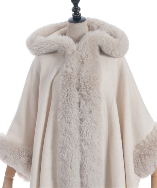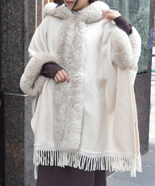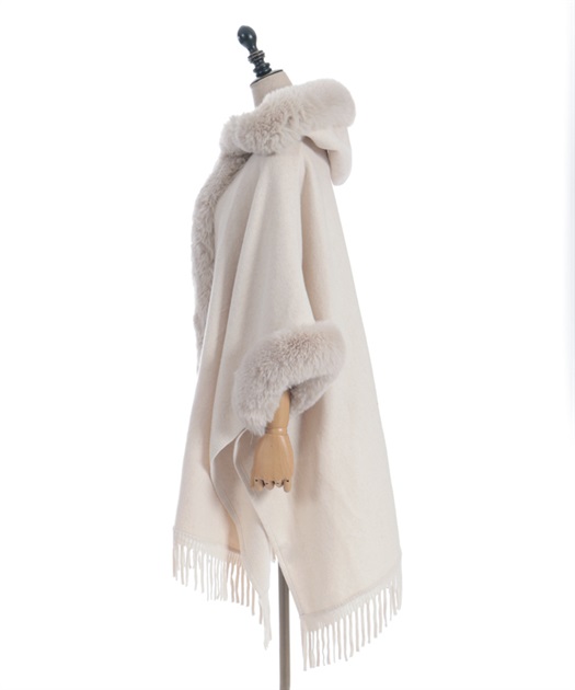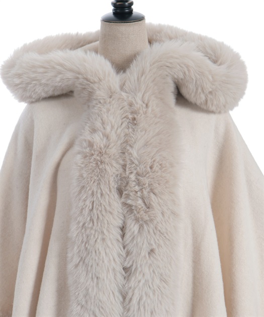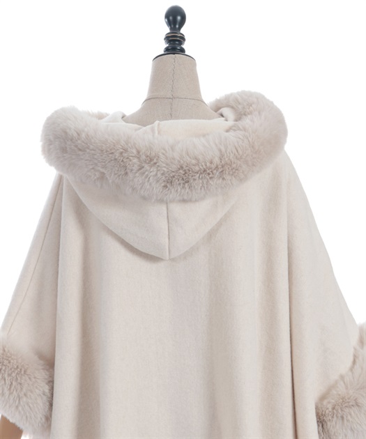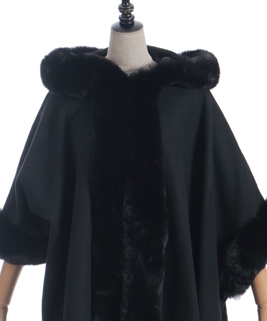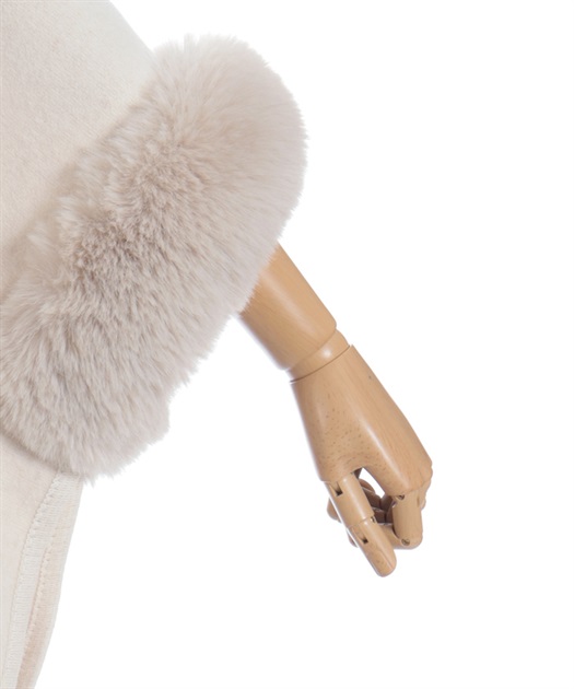 襟元と袖口のファーが華やかさを引き立て、女性らしい印象に。