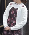 リボン刺繍の花の中央や周りにはパールをあしらい、前ボタンもパールで統一感を出したデザイン。