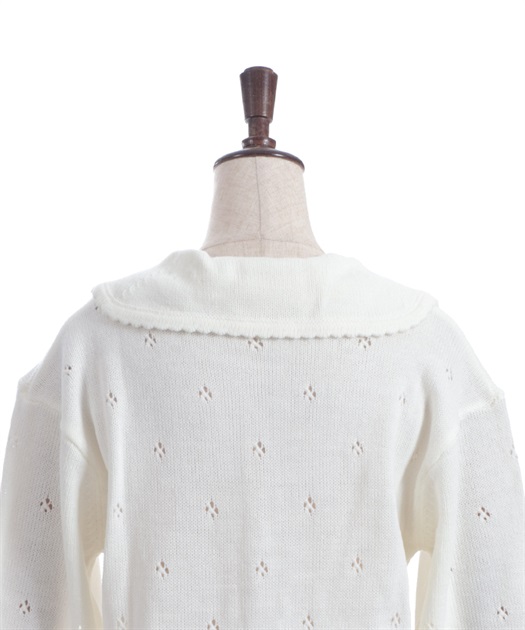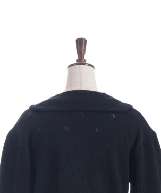 ほっこりしたあたたかなニットで、ネコ足の透かし編みを全面に入れてスッキリした印象に。