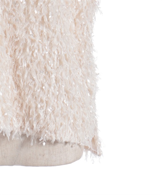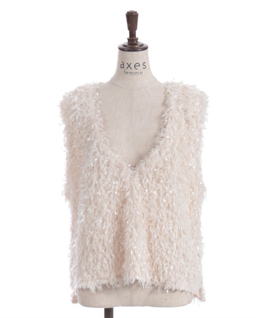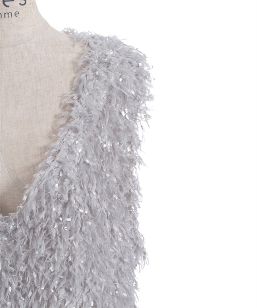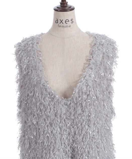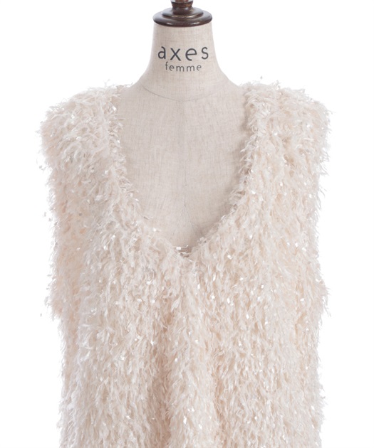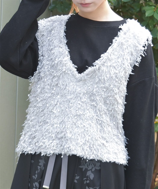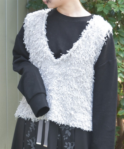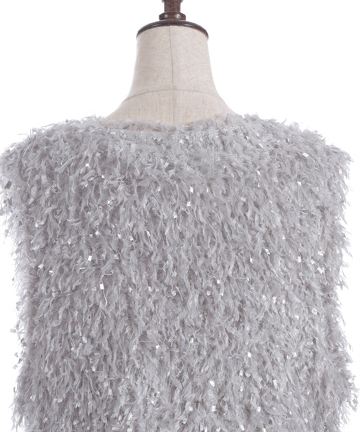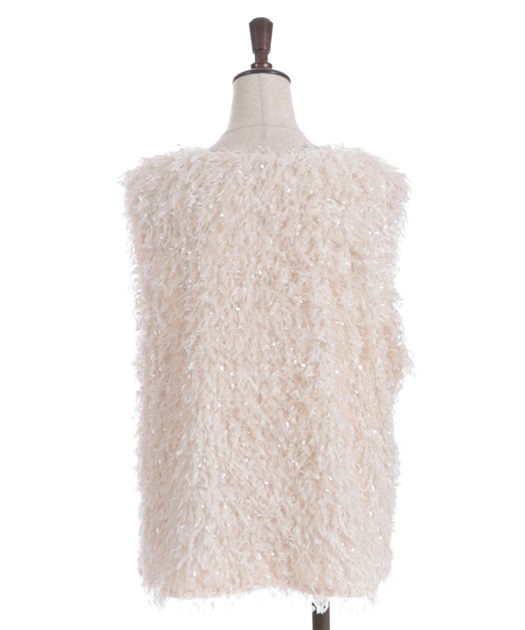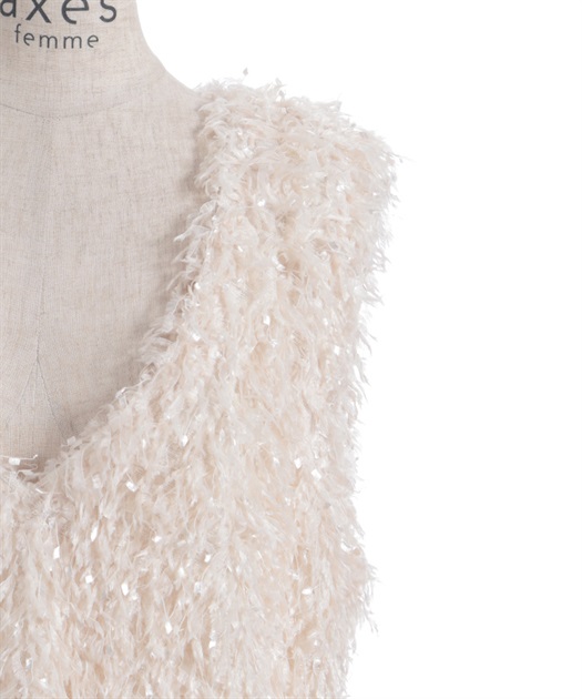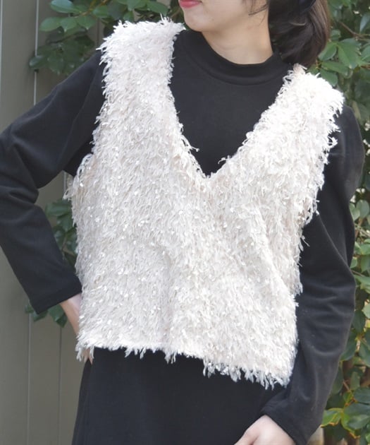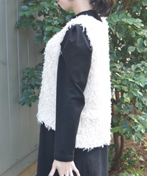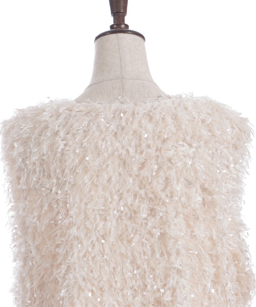 フリンジジャカードの質感が特徴的なベスト。立体感のある表情がスタイリングにアクセントを加え、シンプルなコーデも華やかに見せてくれる一枚です。