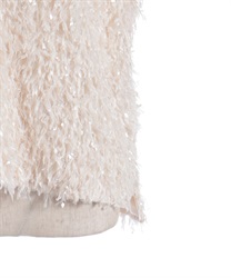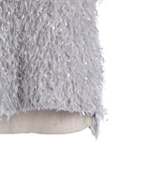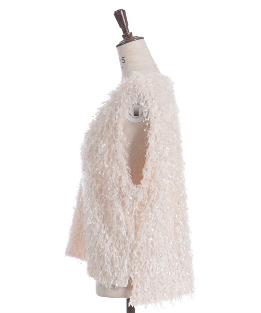 大胆に入ったフリンジの表情とジャカードならではの織り柄が印象的。Vネックデザインで顔まわりをすっきりと見せ、インナーを選ばずレイヤードを楽しめる仕様になっています。