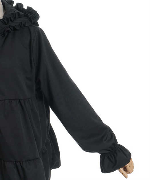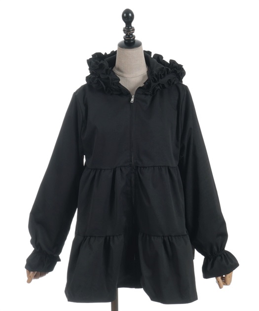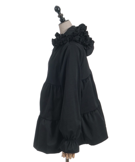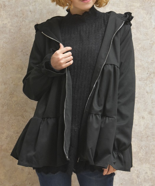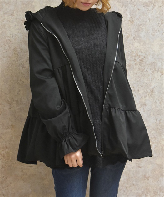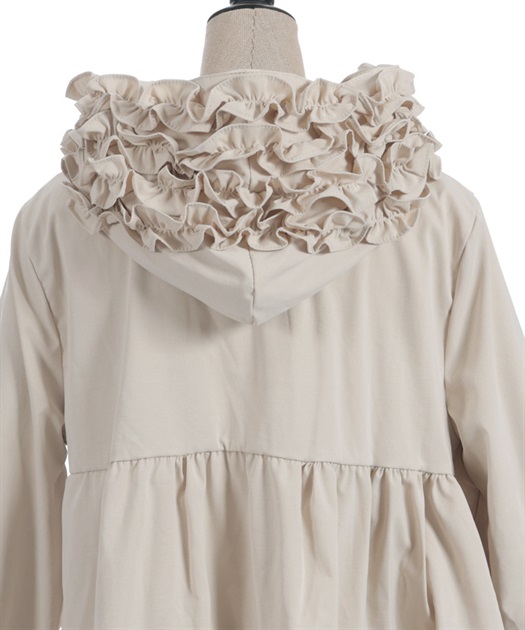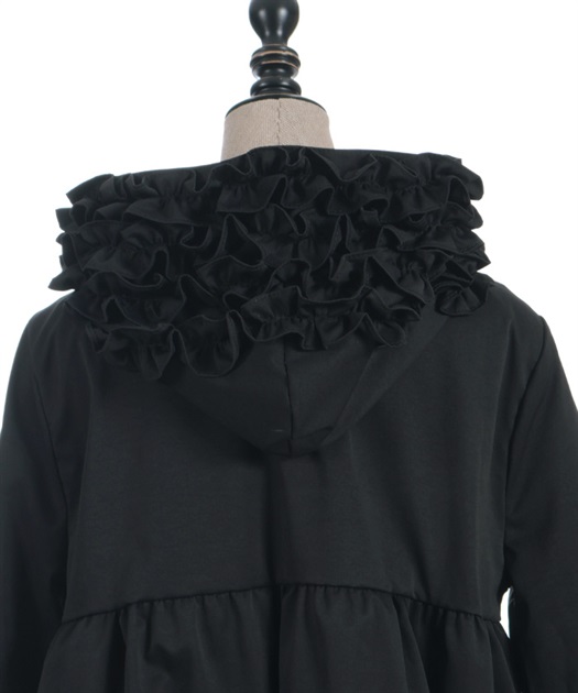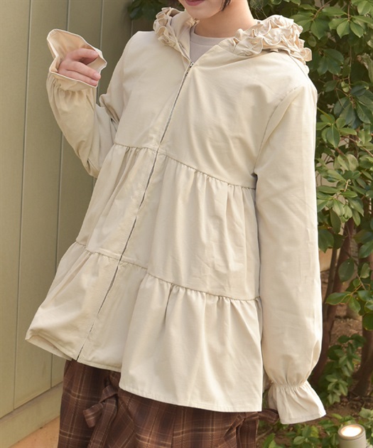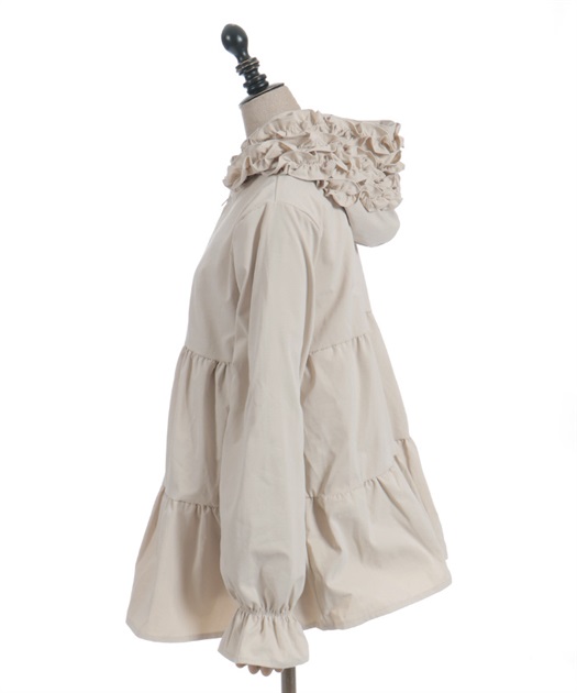 ふんわり広がるティアードデザインが可愛らしく、ミドル丈でバランスよく着られるミドル丈フードコート。