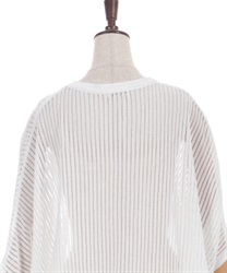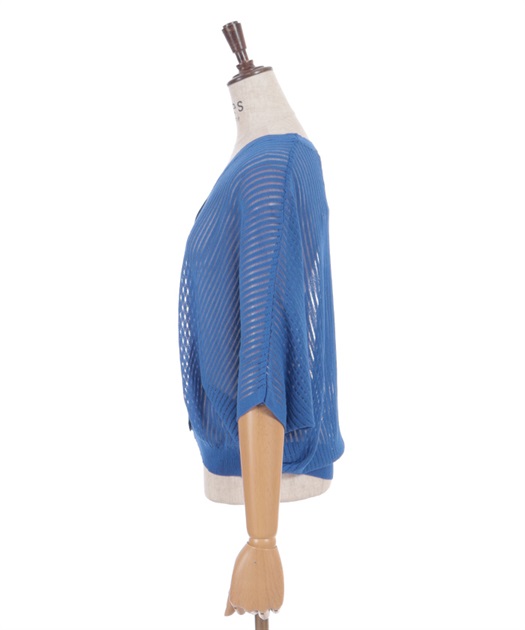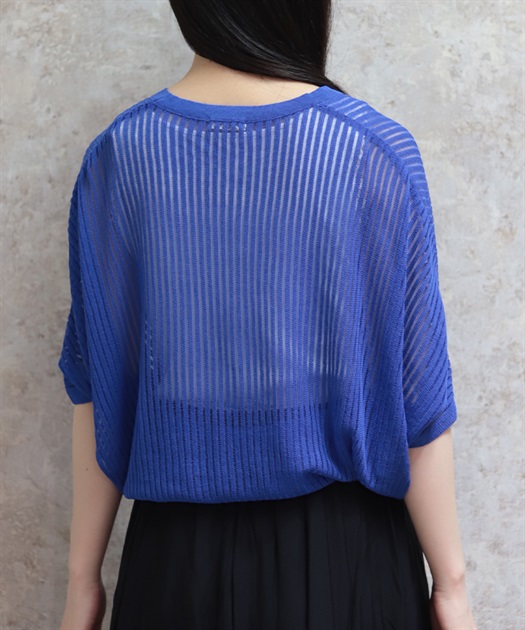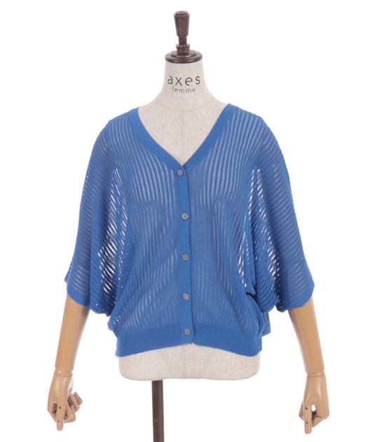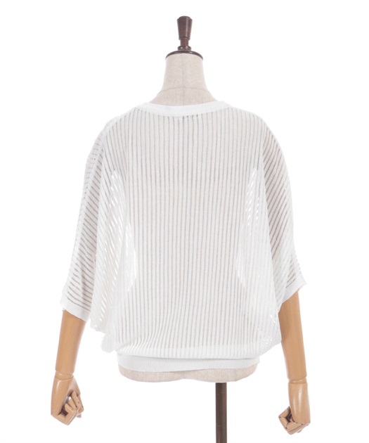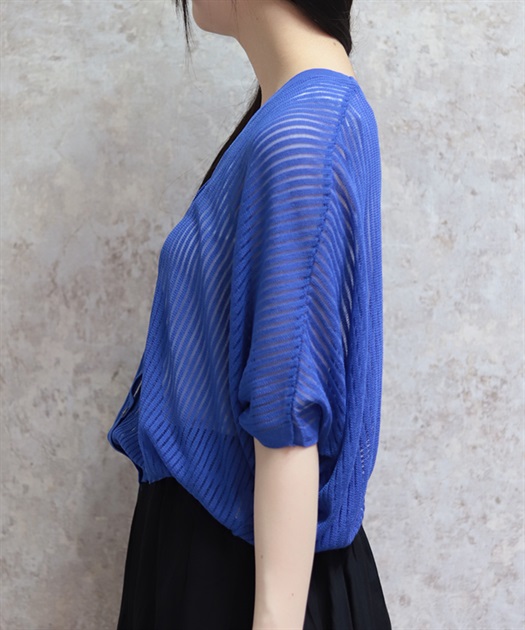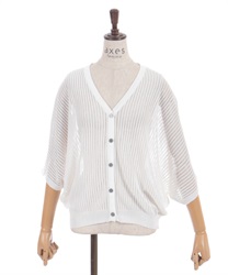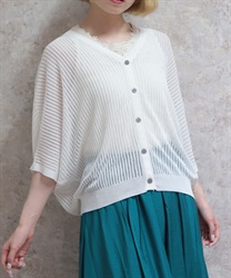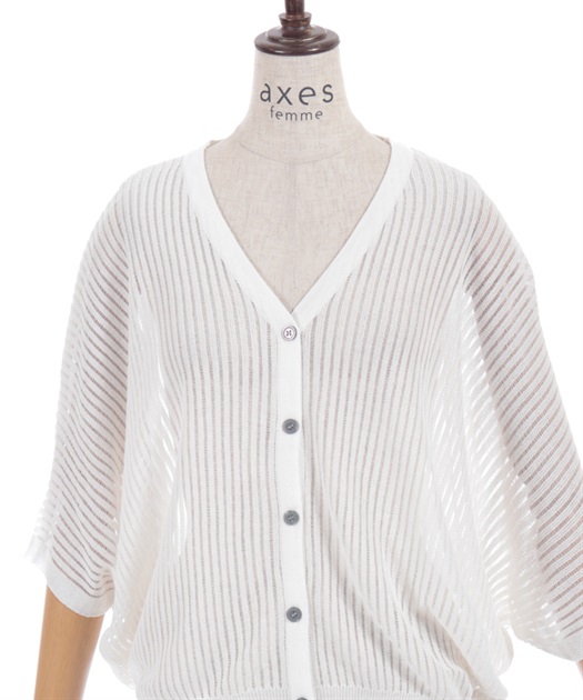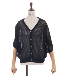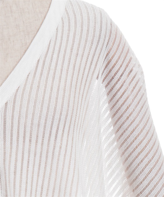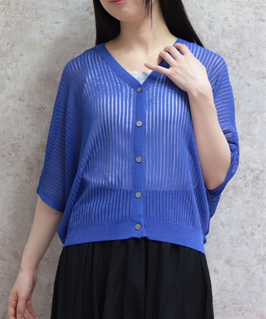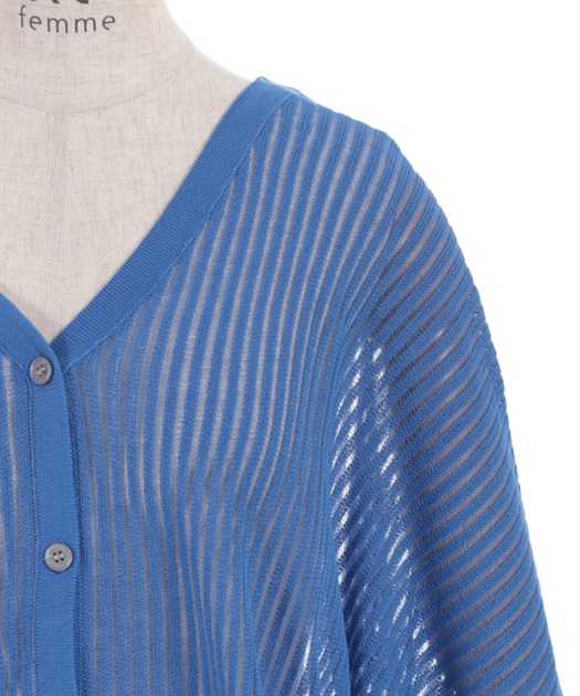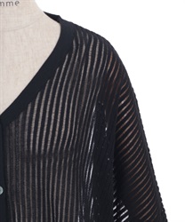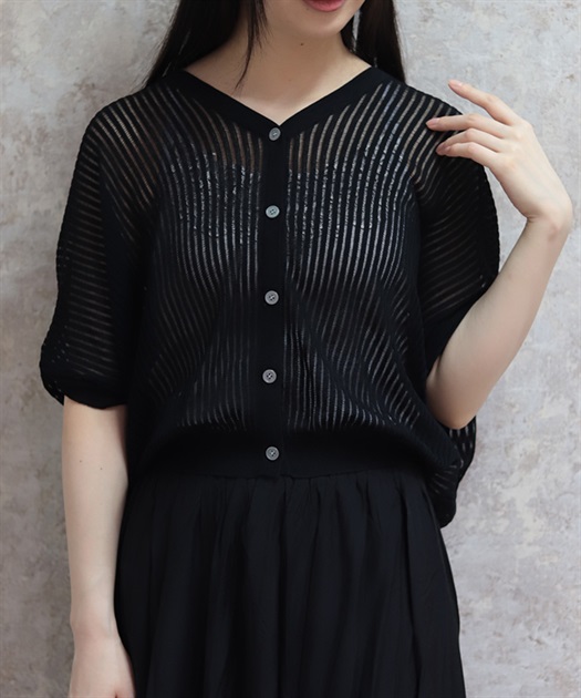 軽やかな透け感が魅力のストライプメッシュニットカーディガン。さらっと羽織れる素材感で、季節の変わり目や冷房対策にも活躍する1枚です。