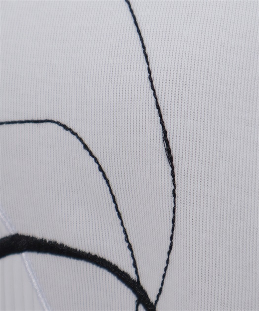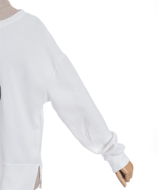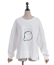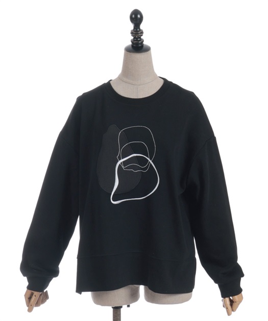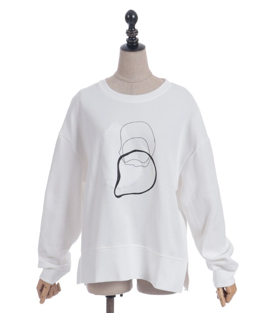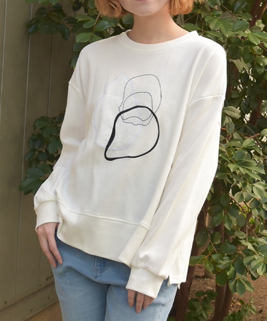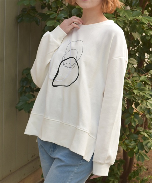 線画風のモチーフ刺繍がさりげなく映え、シンプルなのにこなれた印象が楽しめるスウェット。