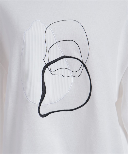 主張しすぎない刺繍ディテールが上品なアクセントになり、デイリーに取り入れやすいバランスに仕上げています。ほどよいゆとりのあるシルエットで着心地よく、リラックス感のある雰囲気が魅力です。