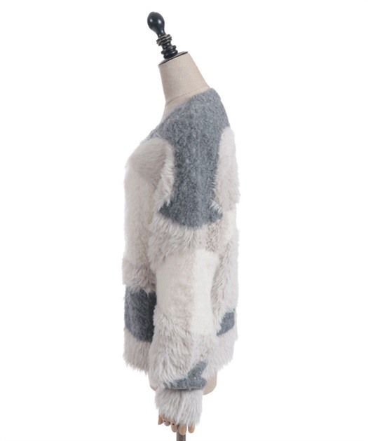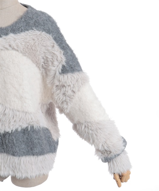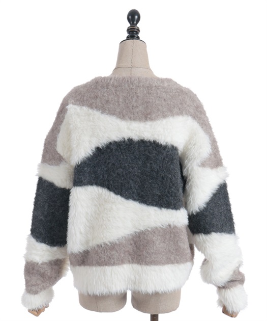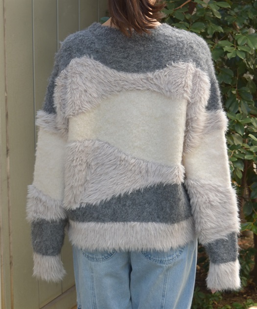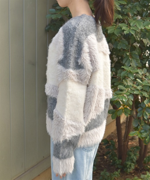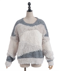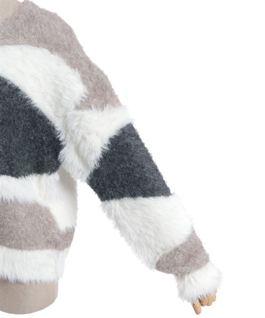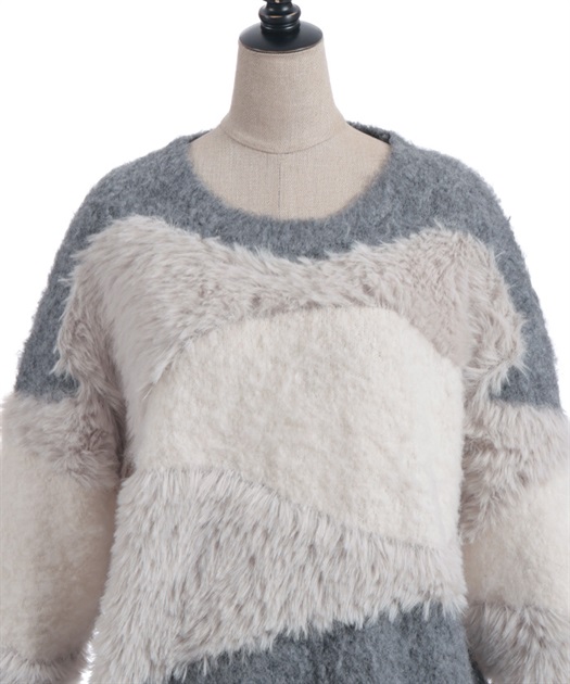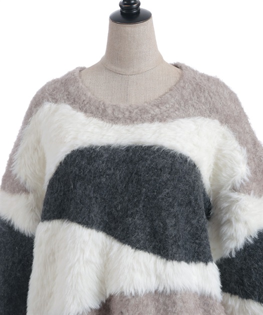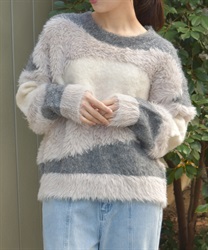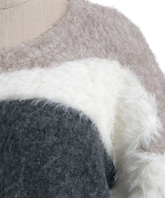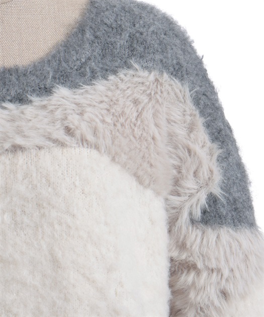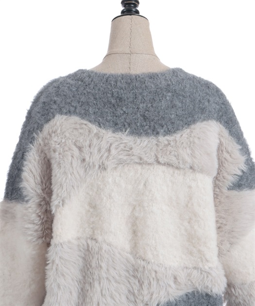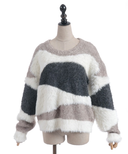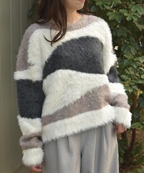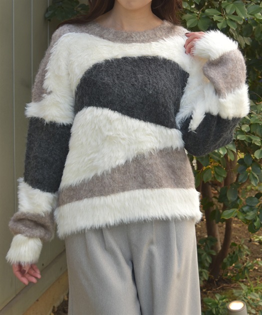 ふわふわのニットをランダムに切り替えた配色が大人かわいいにニット