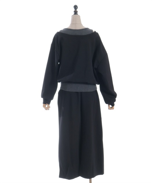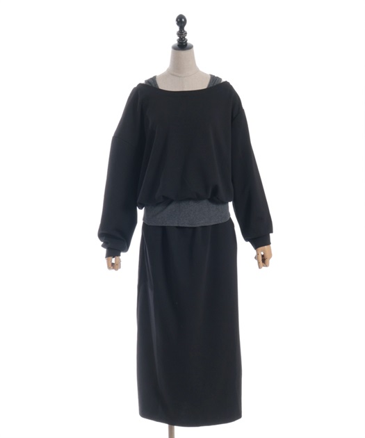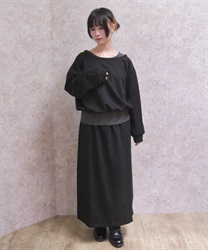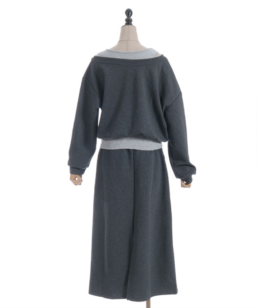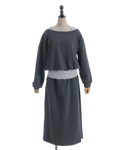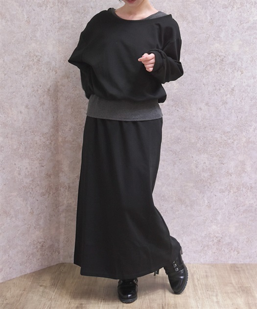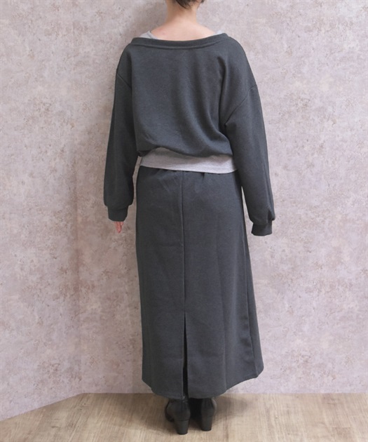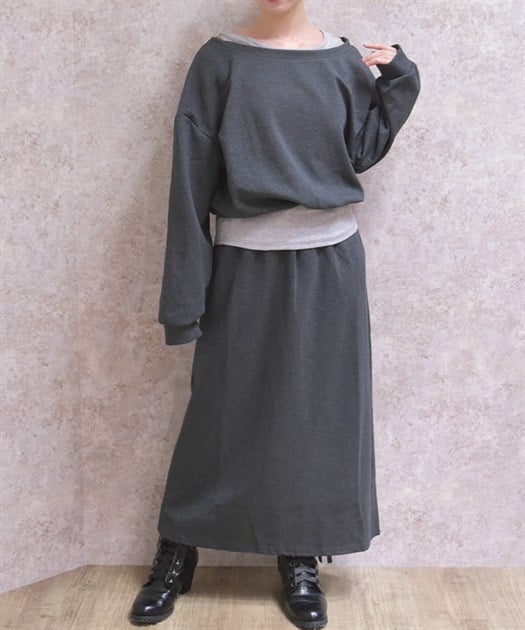 トップスはゆったりとしたシルエット、スカートはストレートラインで女性らしいバランスに仕上げました。