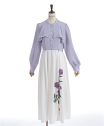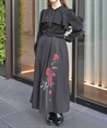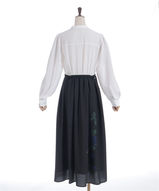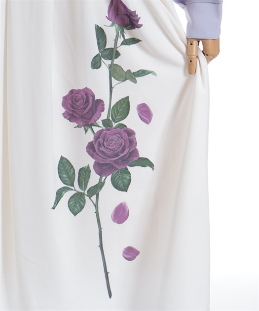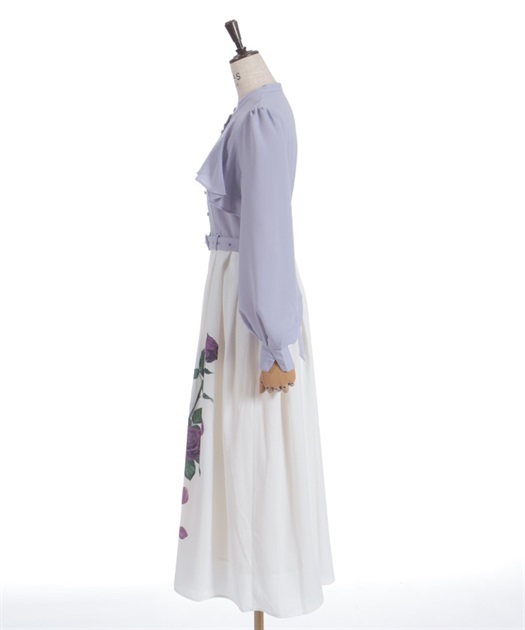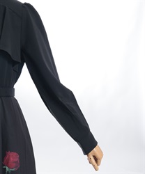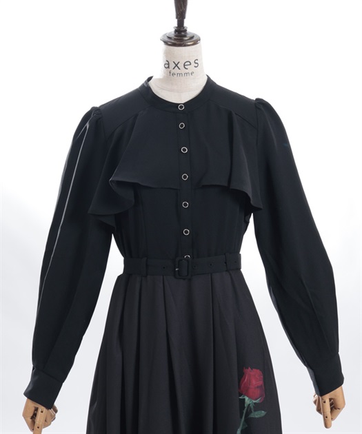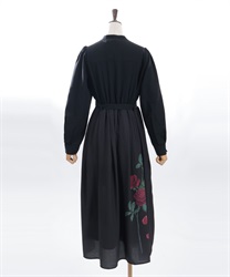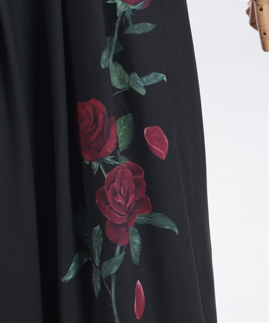 スカート部分に凛とした薔薇をプリントし、視線を惹きつける存在感のあるワンピース。