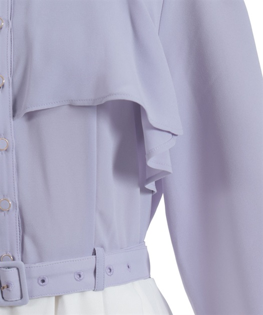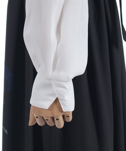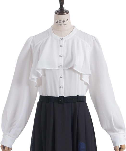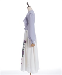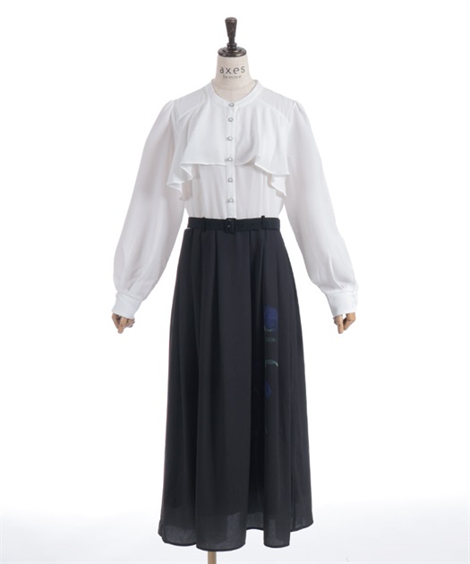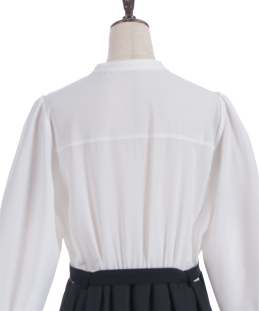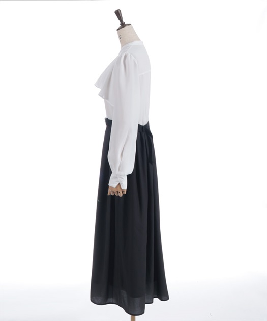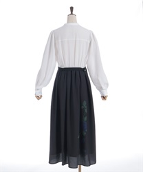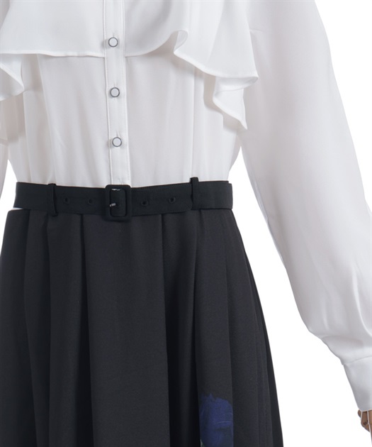 ブラウスとスカートをドッキングした一枚仕立てで、コーディネートいらずでもきちんと華やかに決まるデザインです。シルエットも美しく、主役アイテムとして活躍します。