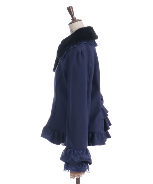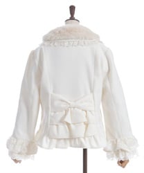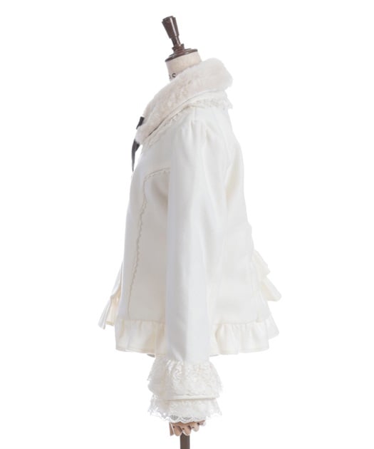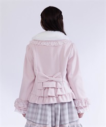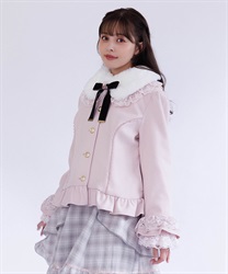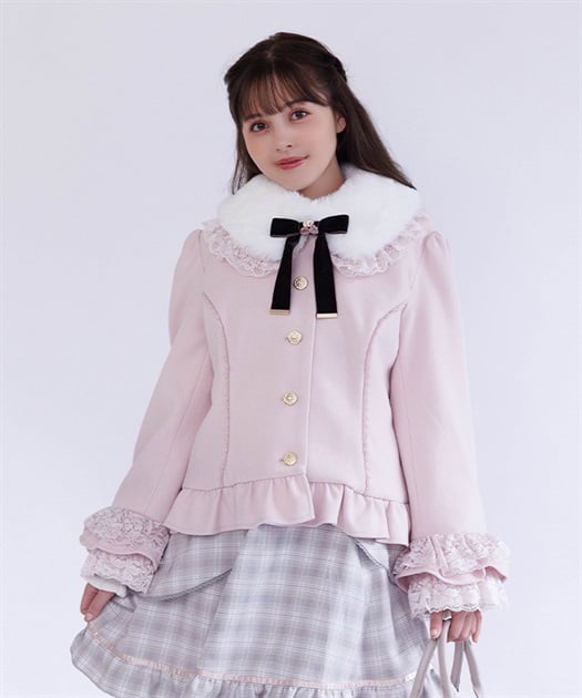 フェミニンなディテールをぎゅっと詰め込んだショート丈のコート。ふわふわのファー襟は取り外し可能で、気分やシーンに合わせてアレンジが楽しめます。