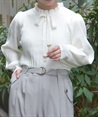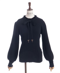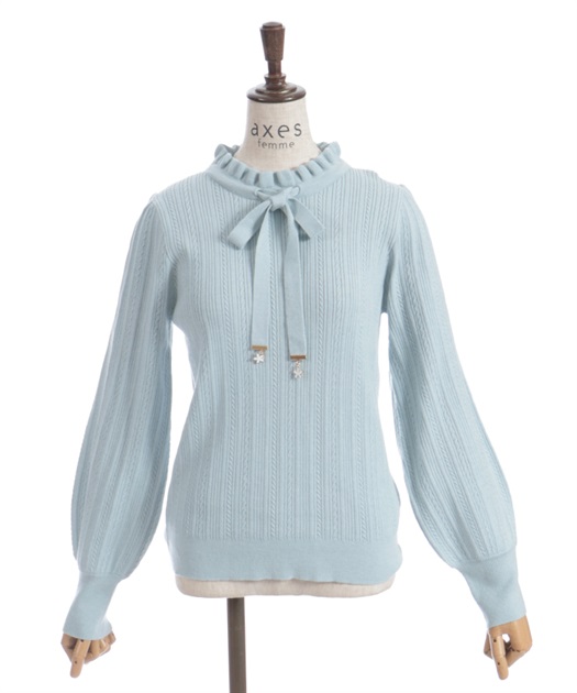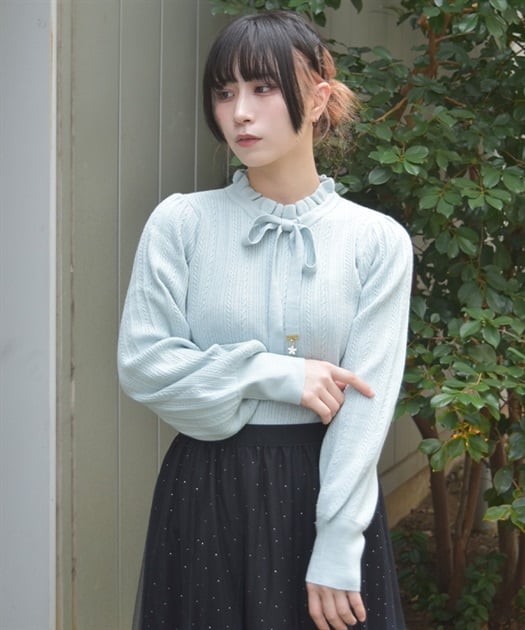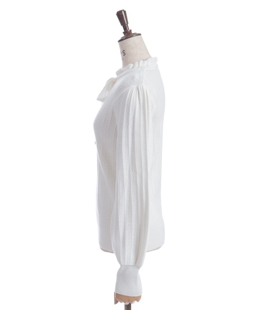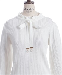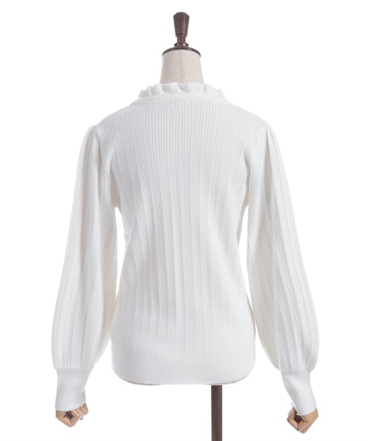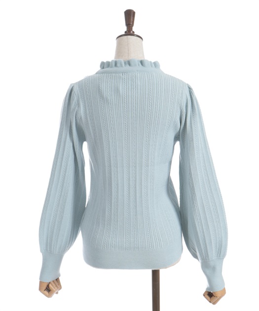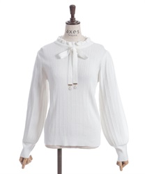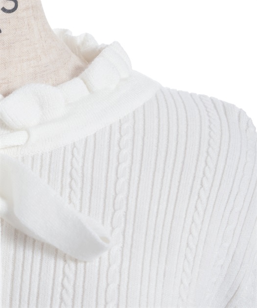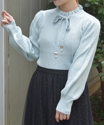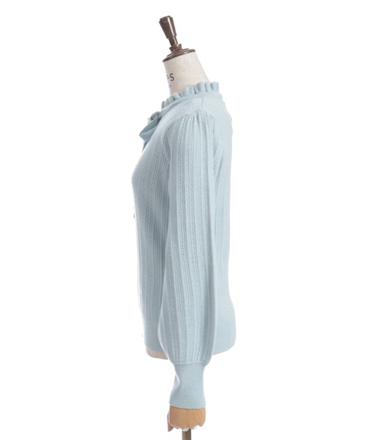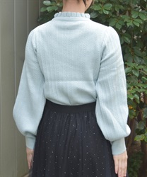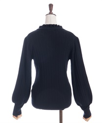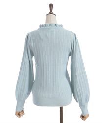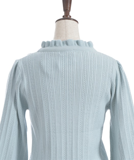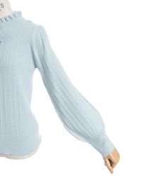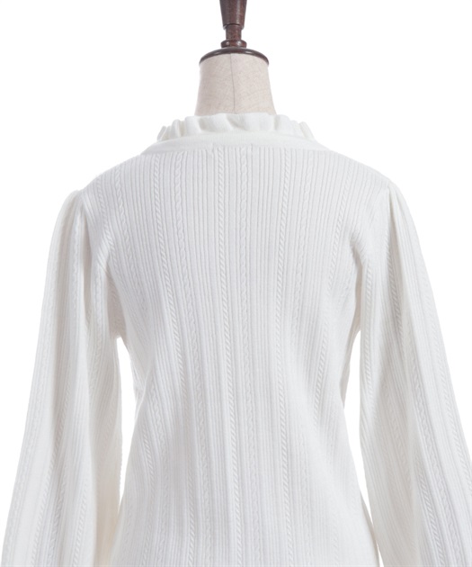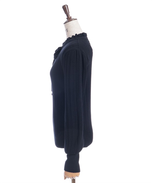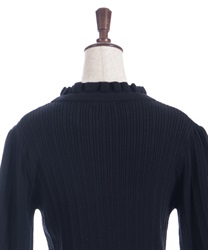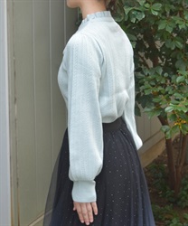 すっきりとしたプチハイネックは、フリル仕様でさりげない華やかさをプラス。