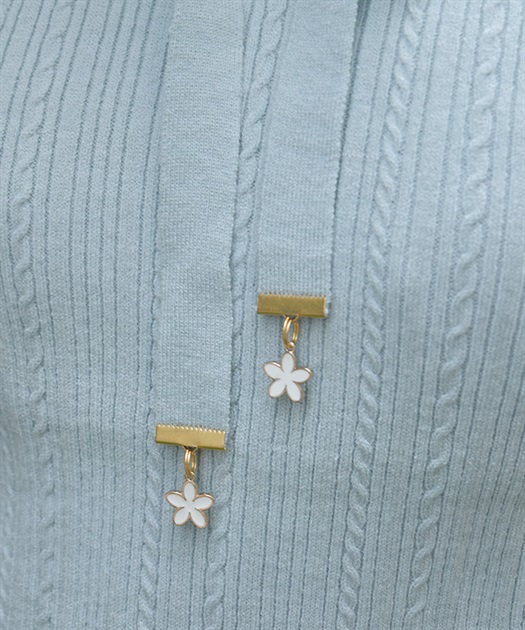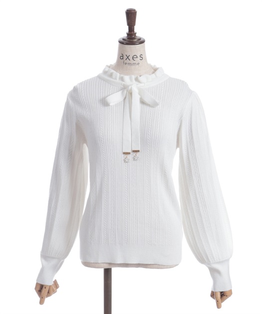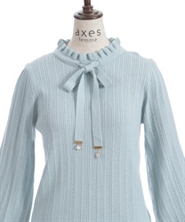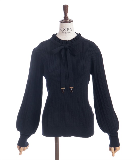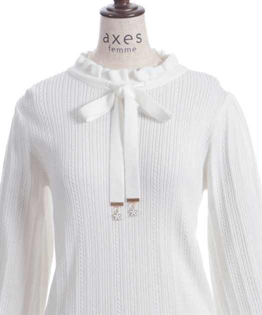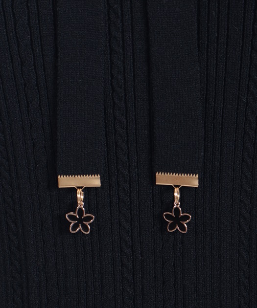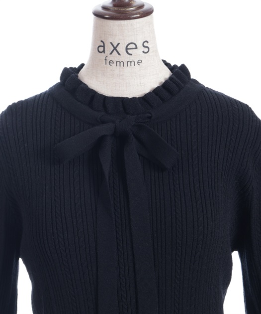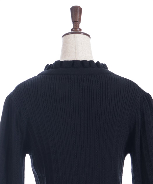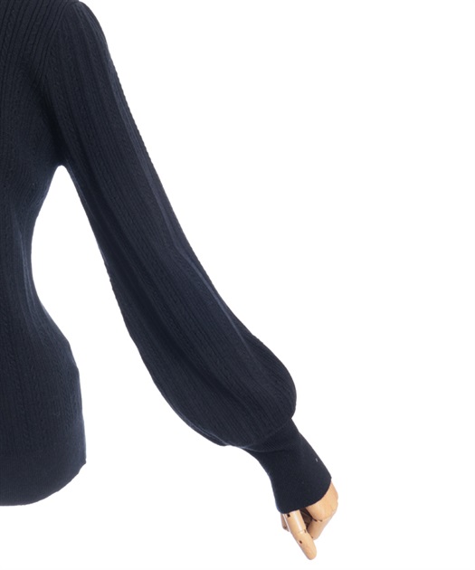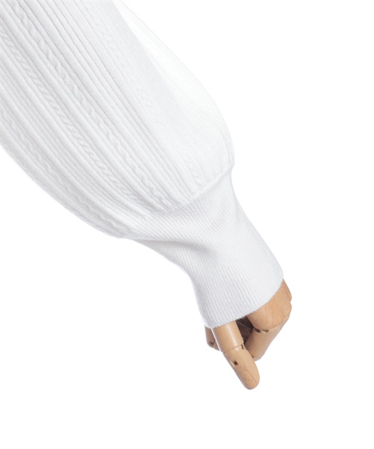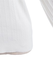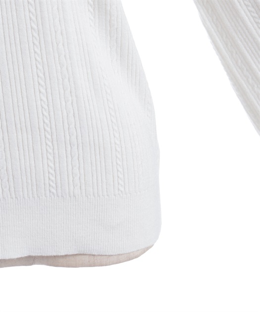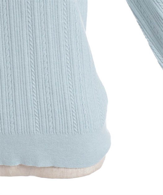 シンプルなリブの中にさりげなく入ったケーブルで、縦ライン細見えがうれしいポイント。