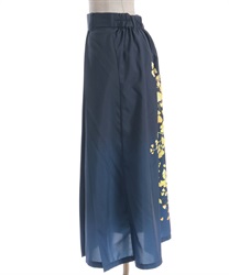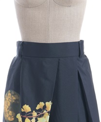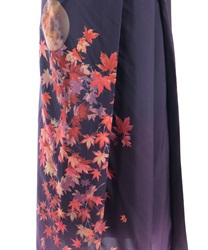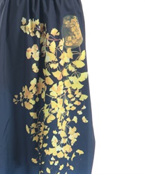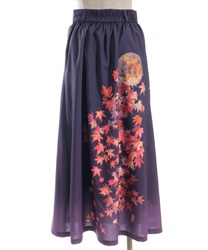 日本の秋を感じさせる、紅葉【楓】【銀杏】をモチーフにしたアートプリントスカート。静謐な夜空に浮かぶ月と舞い散る葉が印象的で、まるで一枚の日本画のような美しさを楽しめます。