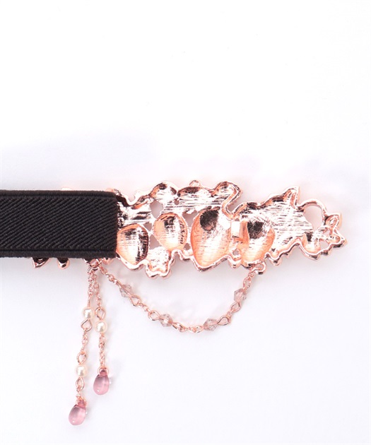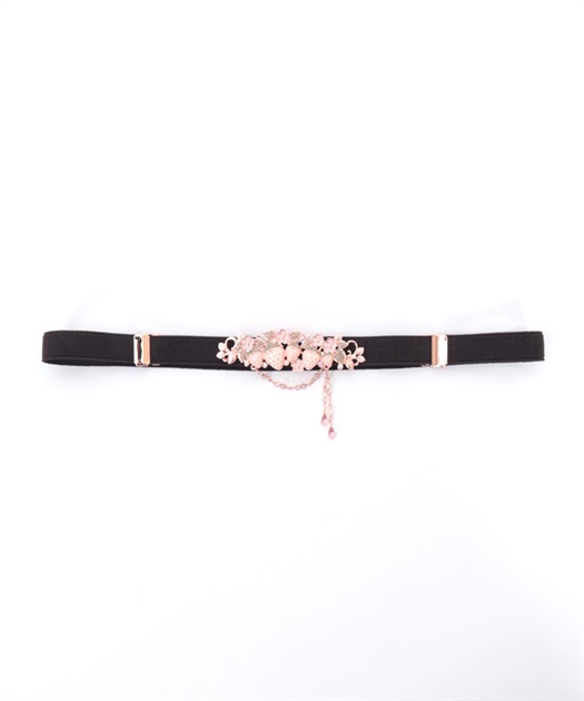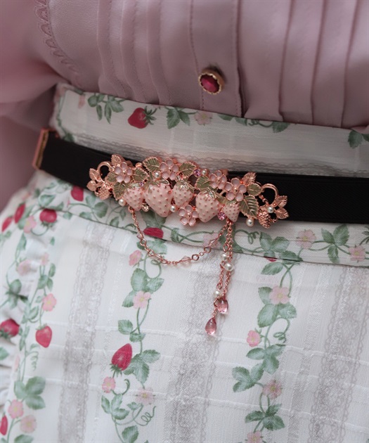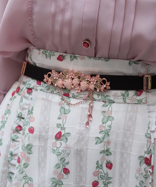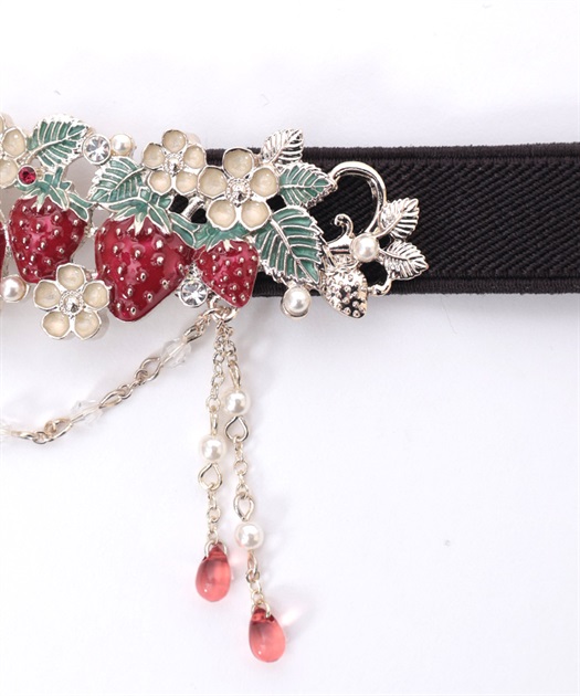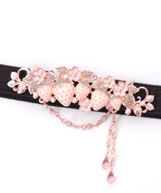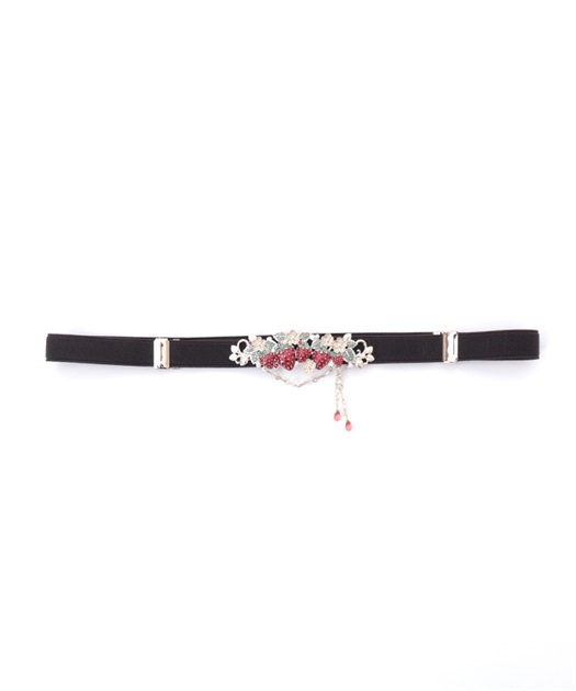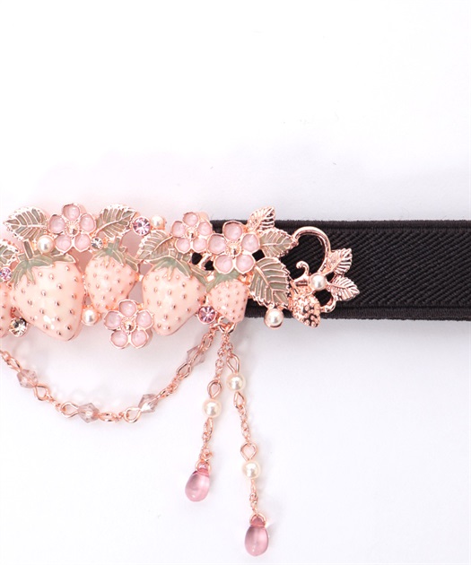 立体的な苺モチーフが並んだフェミニンな細ゴムベルトです。