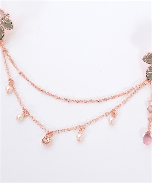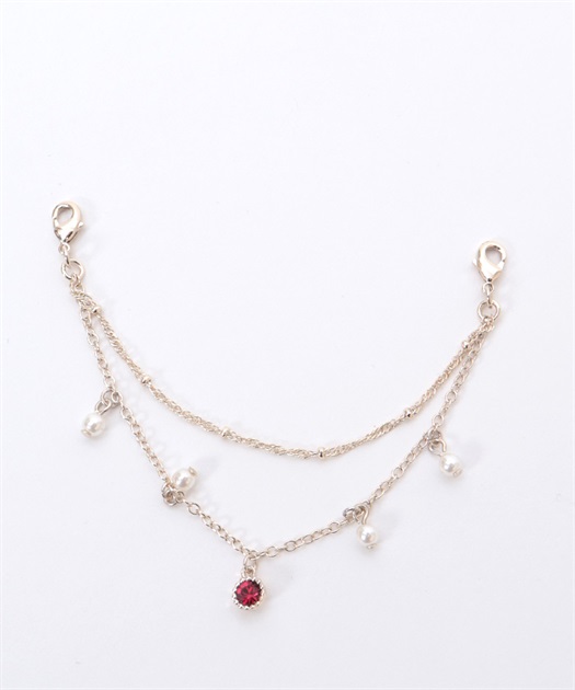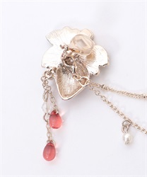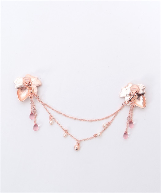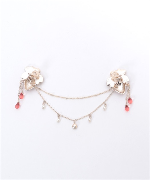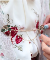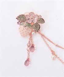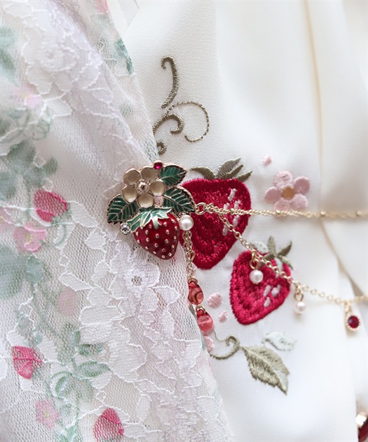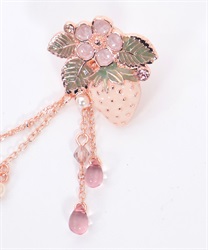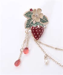 ブラウスの襟先に留めてネックレス風に見せたり、苺柄切替フレアスカートのウエストフリルに留めれば、さりげない装飾に◎