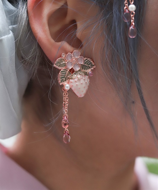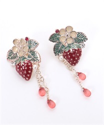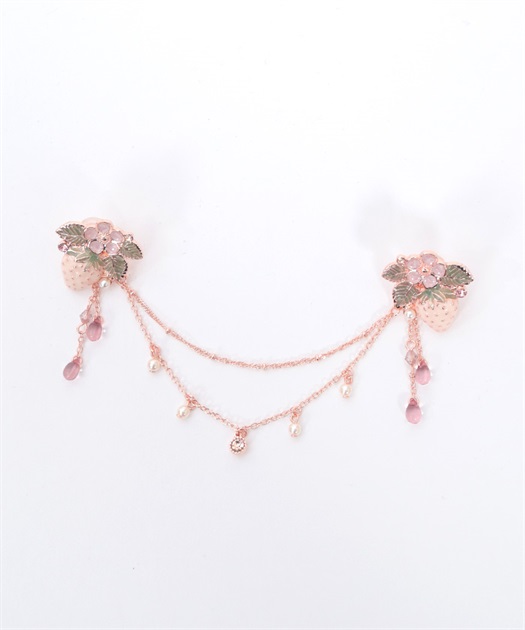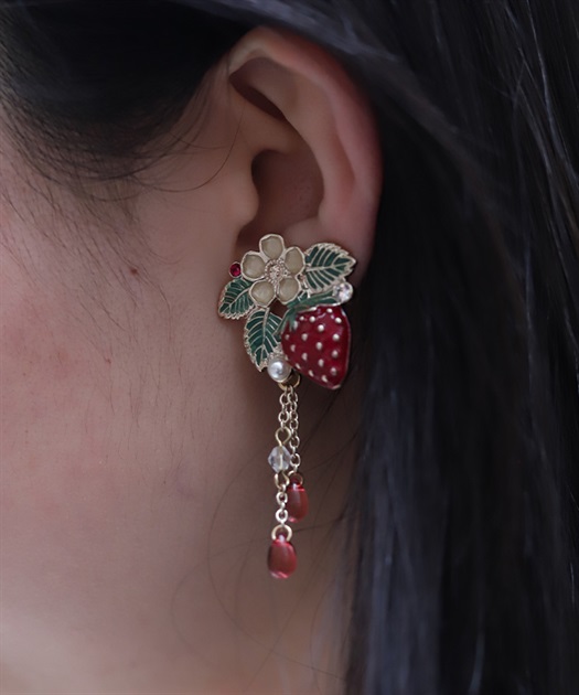 立体的な苺モチーフがポイントのフェミニンな襟クリップ&イヤリングです。
