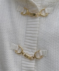 上品な印象のビットデザインがポイントで、前が開かないよう隠しスナップボタンが内側に付いた仕様です。