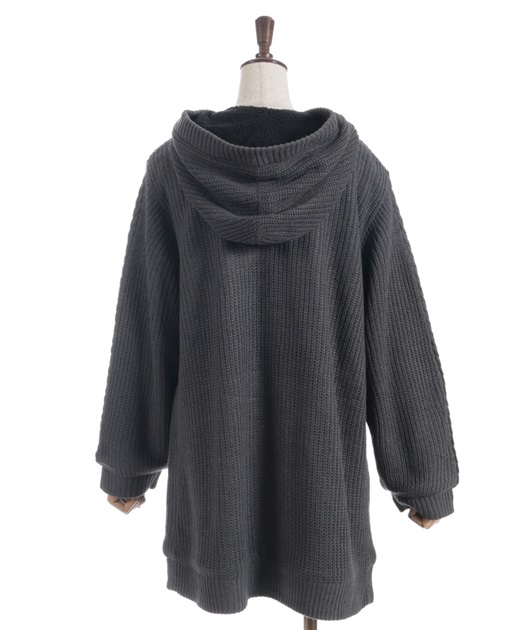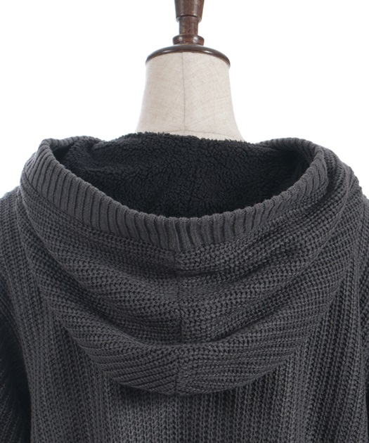 ニット生地×裏ボアの見た目も着心地もあたたかなコーディガンです。