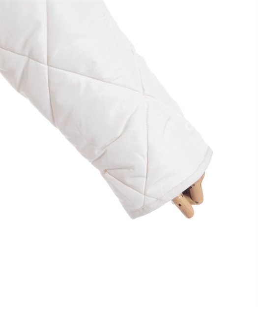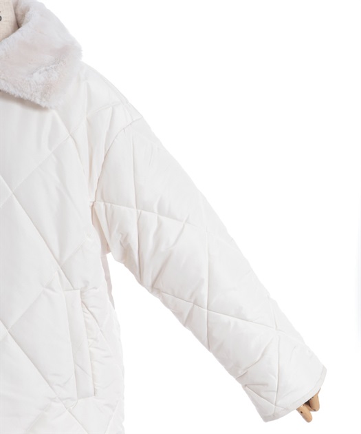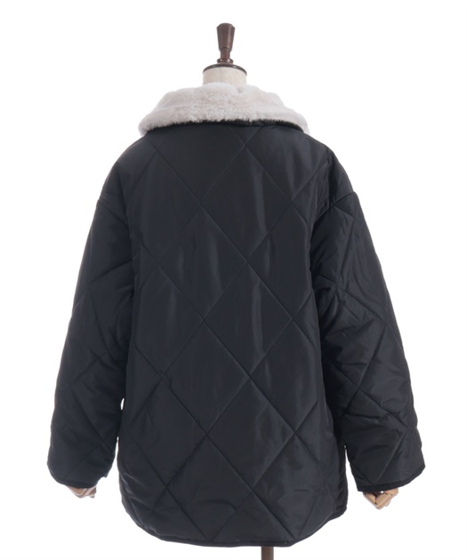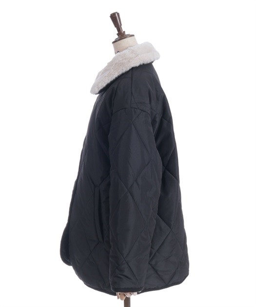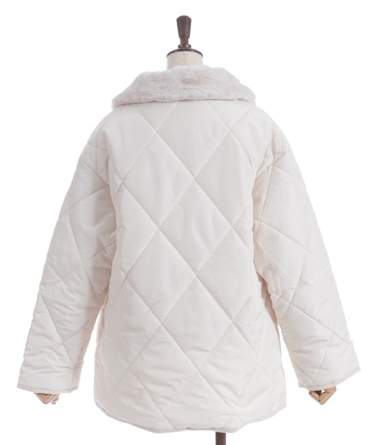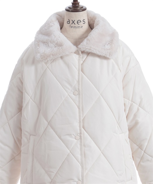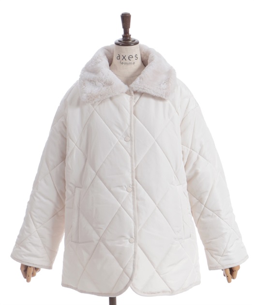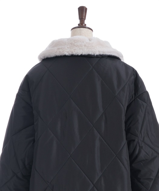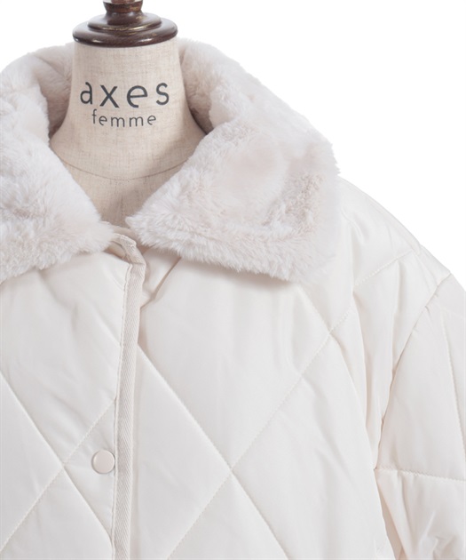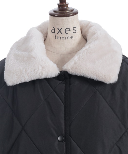 マットなキルティング生地が大人っぽく、ファー衿が顔まわりを優しく包み込みフェミニンな印象に。