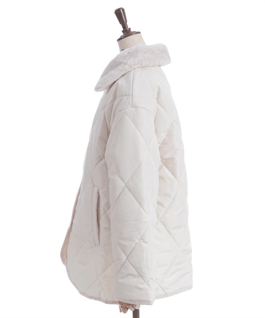 ふんわりとしたファー衿が上品でかわいらしい、キルティングコート。