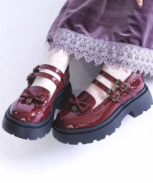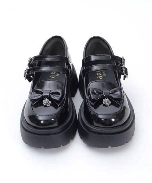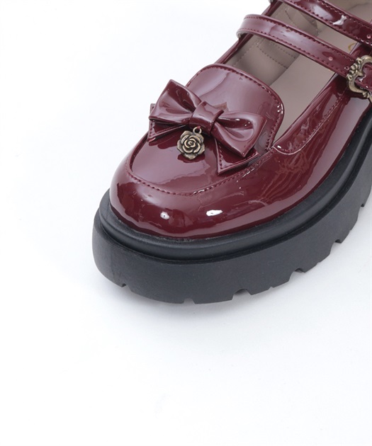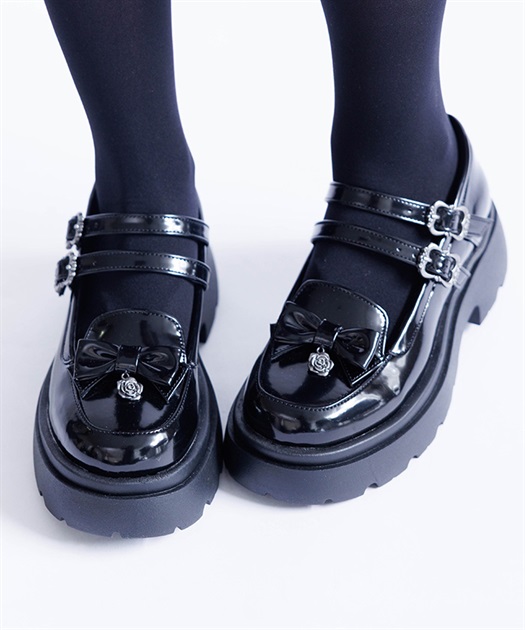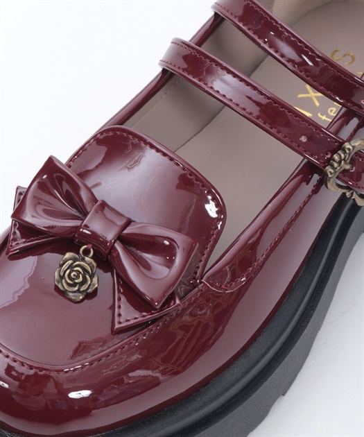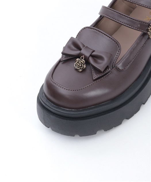 バラチャーム付きのリボンがポイントのローファーパンプスです。
