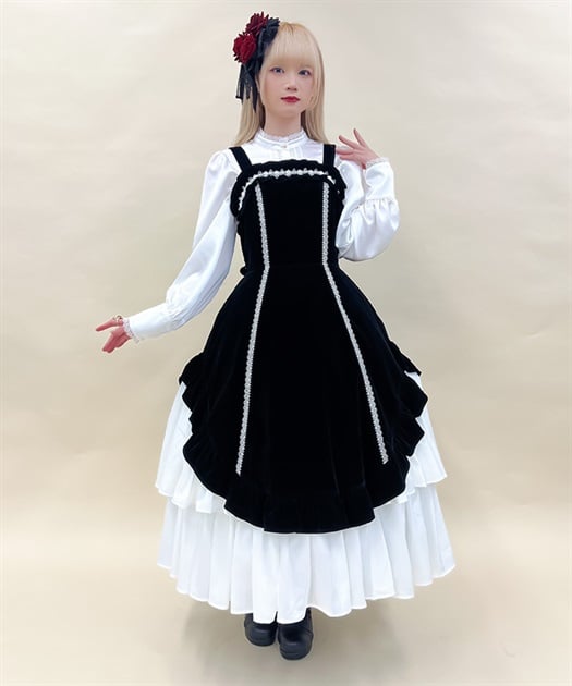 クラシカルなシルエットのジャンパースカートです