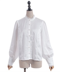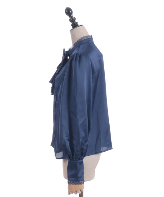 ラッフルフリルがポイントのクラシックなブラウスです。