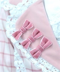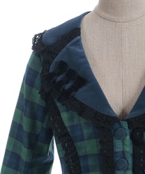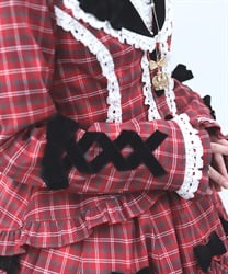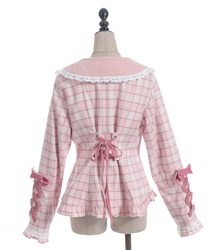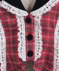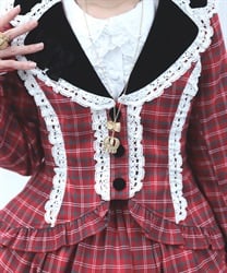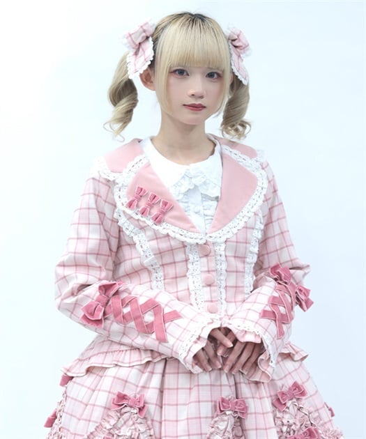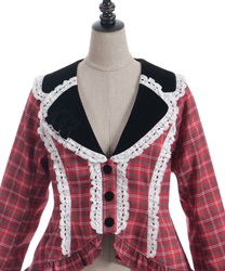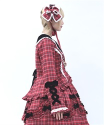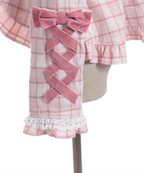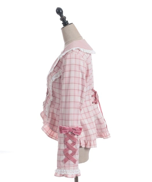 トーションレースをたっぷりあしらい、お袖と後ろ中心にはレースアップデザイン。シャルミエールのウエストラインに合わせた裾回りになっており、パニエを履いたスカートでも問題なく着用できます。
