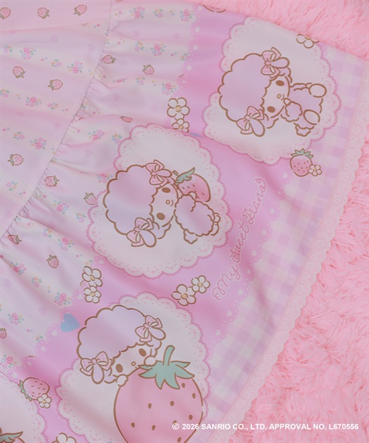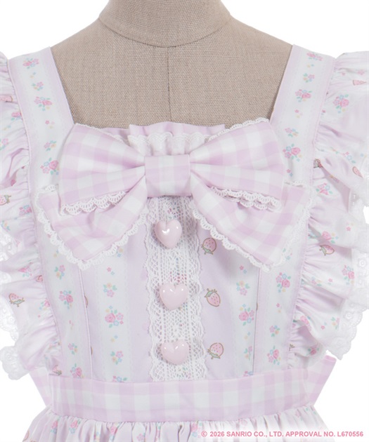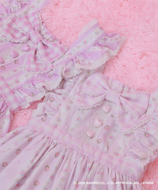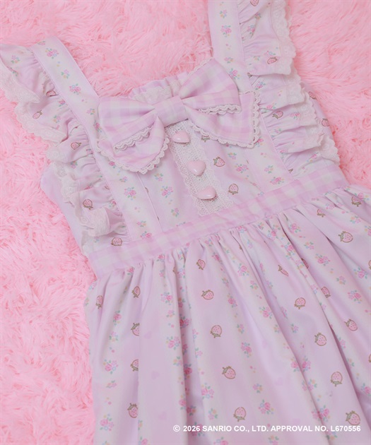 マイスウィートピアノのスウィートストロベリー柄をあしらったキュートなティアードジャンパースカートです。