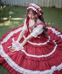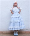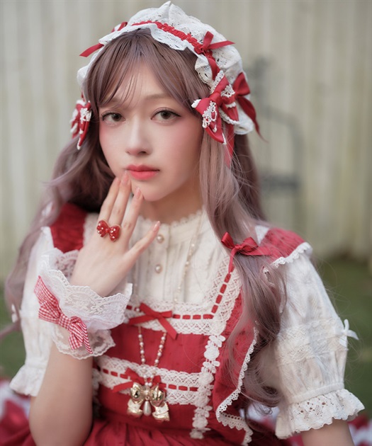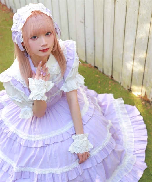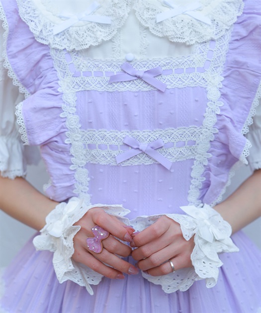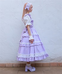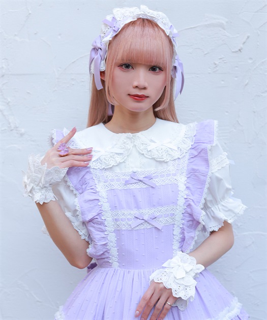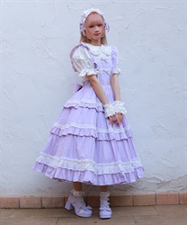 ブラウスはスタンド衿、丸襟どちらを合わせても可愛くご着用いただけます。後ろウエストリボンは取り外しが可能です。