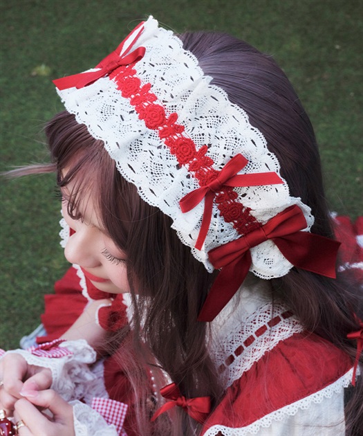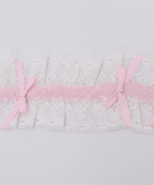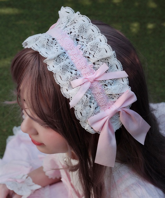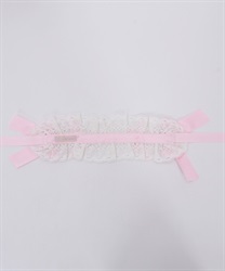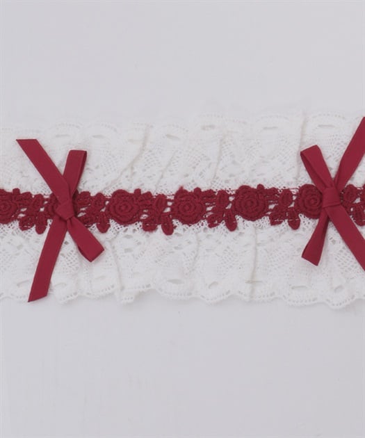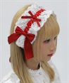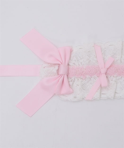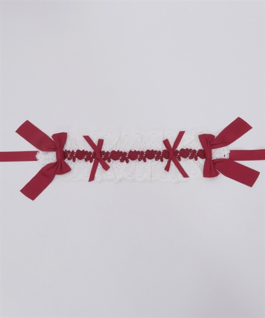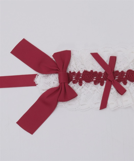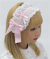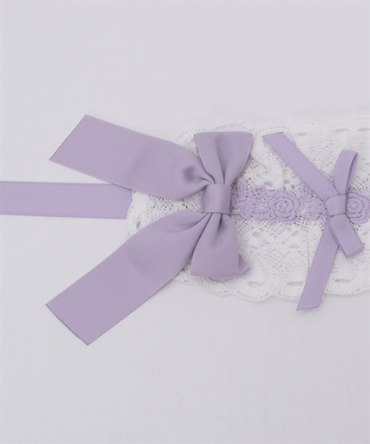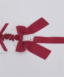 トーションレースが可愛い細めのヘッドドレスです。クリップがついているので簡単に着脱ができます。リボンはマットサテンリボンになっており、メイジージャンパースカートと同色のリボンになっています。