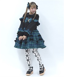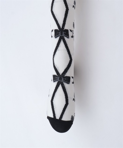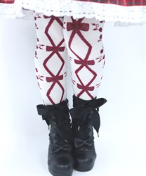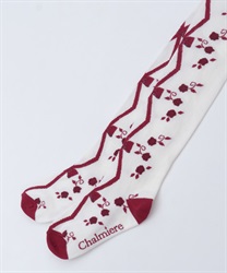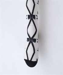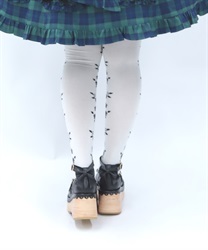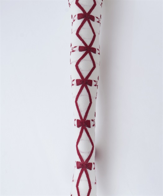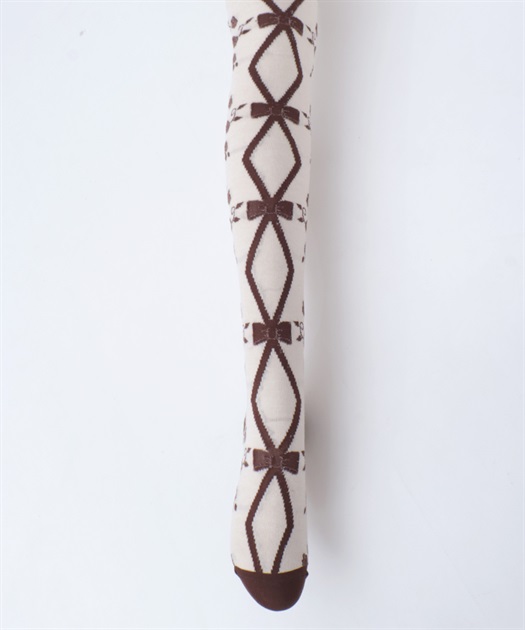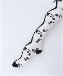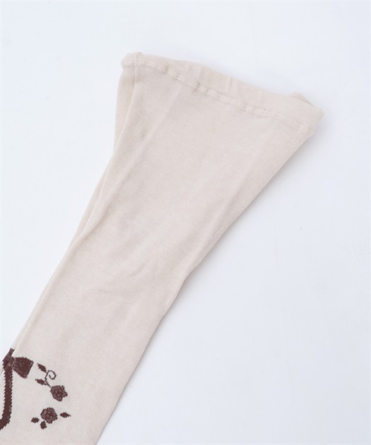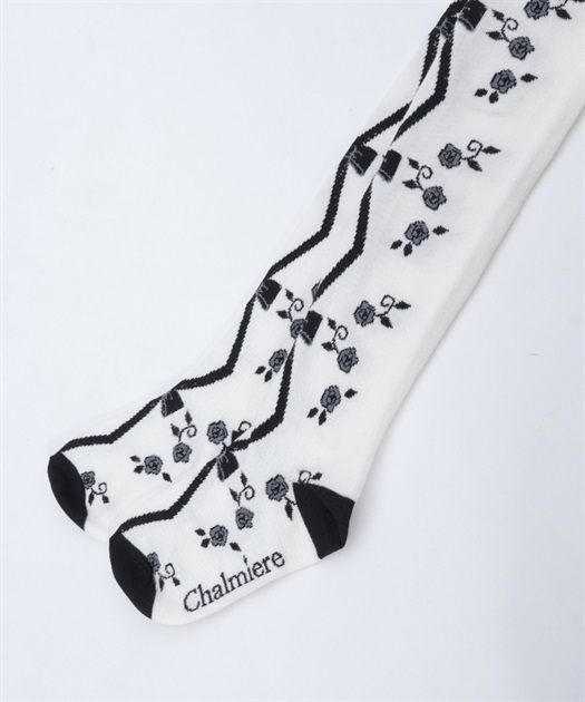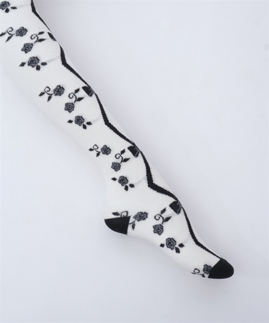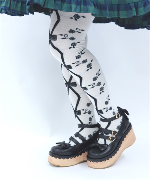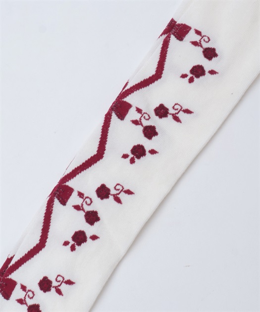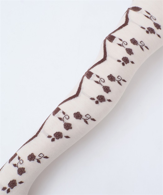 寒い冬にぴったりなタイツは合わせやすい色展開になっております。前中心にレースアップ柄、サイドに薔薇の模様が入ったニット素材のタイツです。