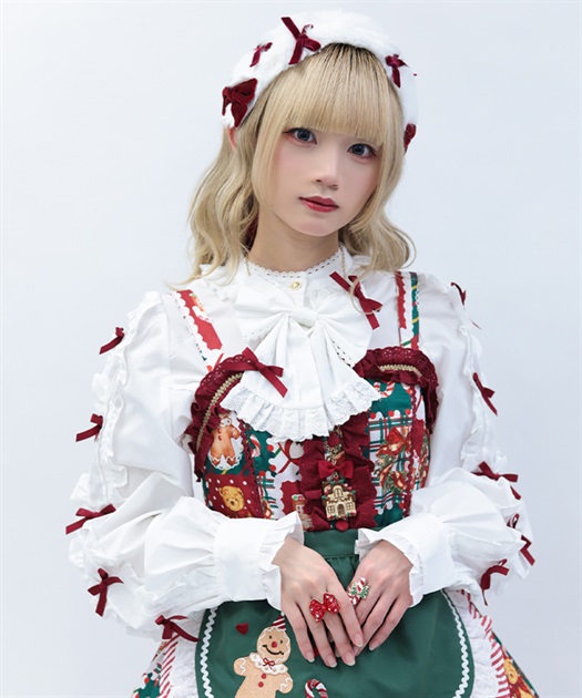 同時販売のクリスマス柄のみならずいろいろなコーデに合わせやすいブラウスです