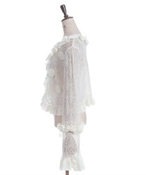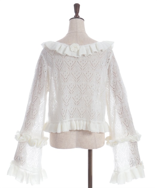 ふわりとした素材感に、フリルやニットのお花モチーフが散りばめられ、乙女心をくすぐるアイテムです。