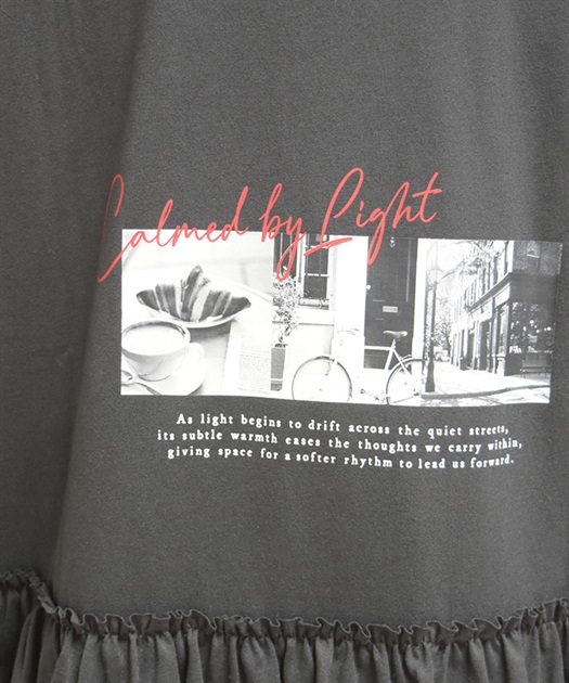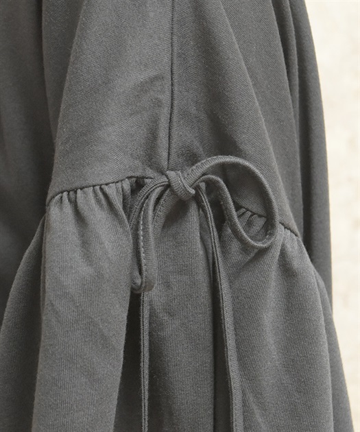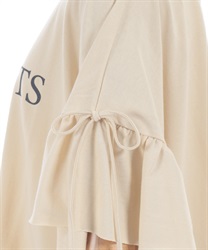 ゆったりとしたオーバーシルエットで、リラックス感のある着心地に仕上げた一着。袖や裾にあしらわれたフリルディテールが、カジュアルな中にやさしい華やかさを添えています。シンプルながらも一枚でさりげなく存在感のあるデザインです。