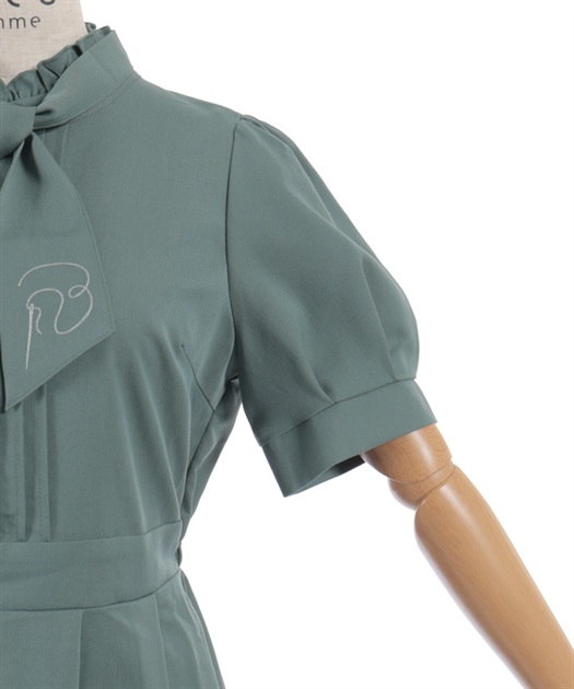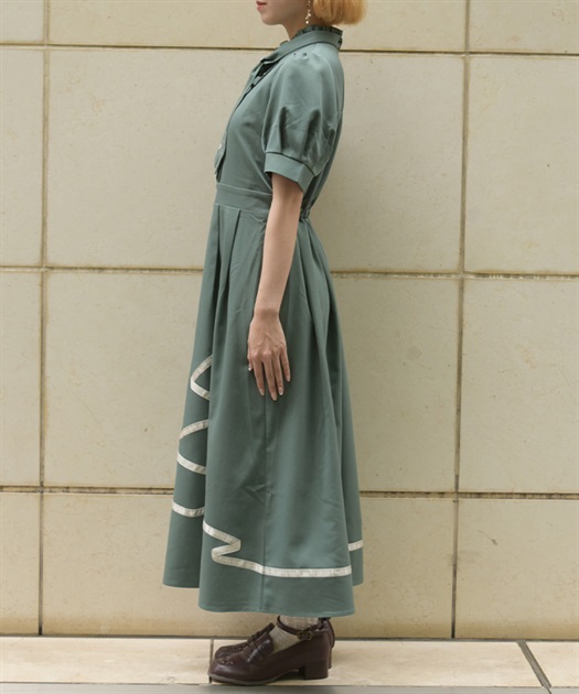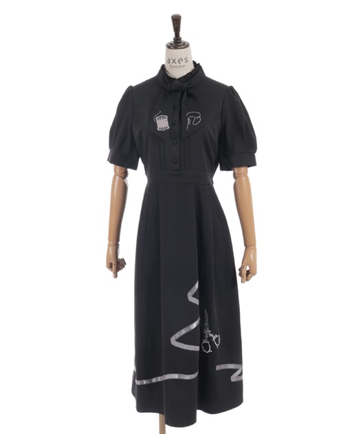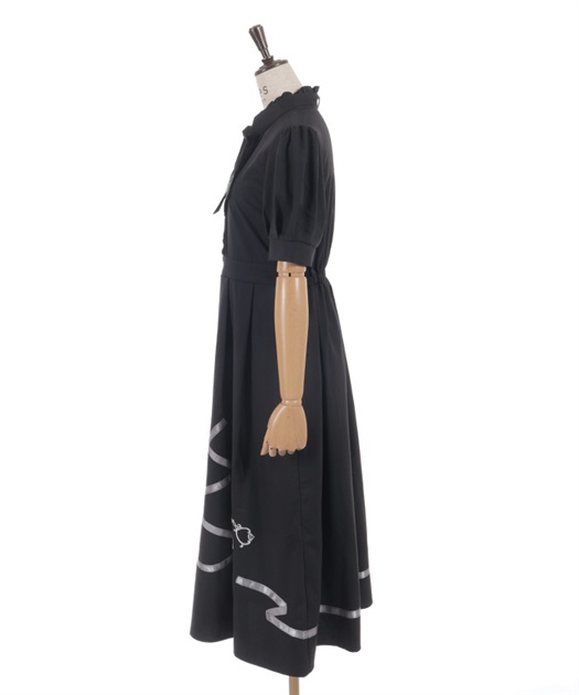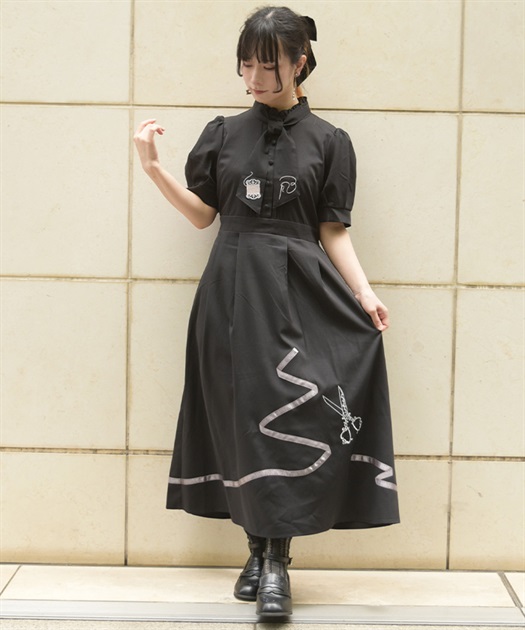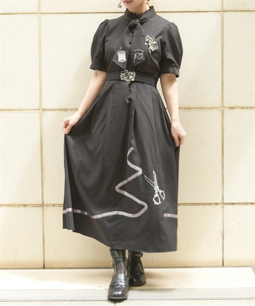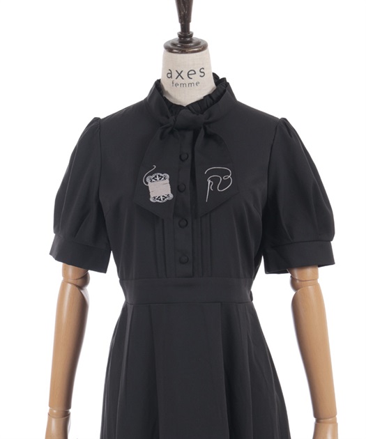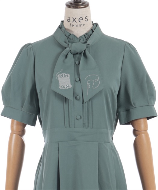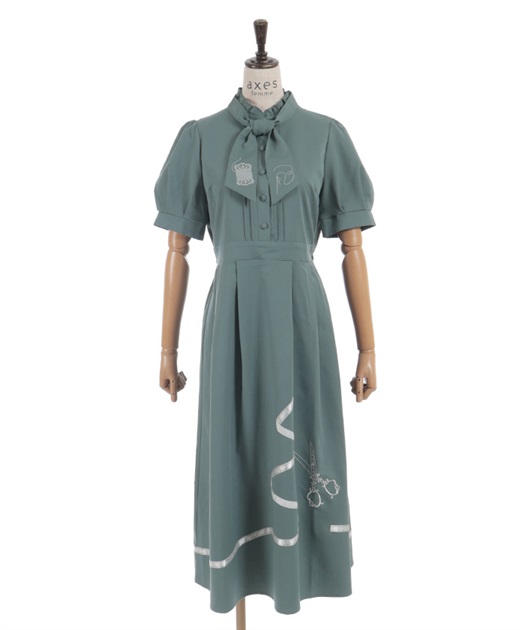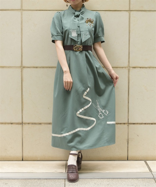 ソーイングモチーフを刺繍やプリントリボンで表現したワンピースです。