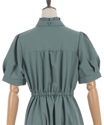 後ろウエストはゴム仕様で、着用しやすく、ウエストタックですっきりした腰周りがポイントです。