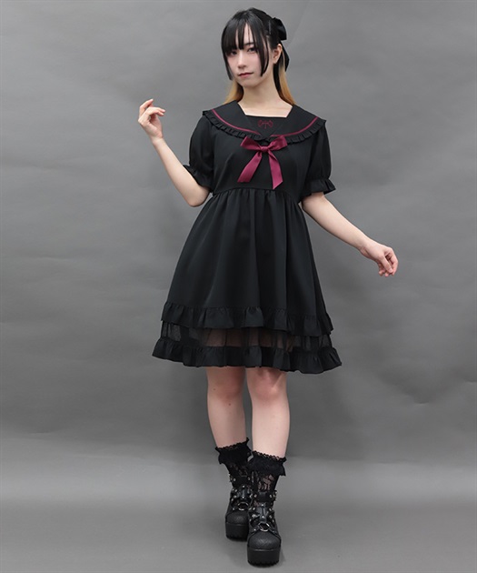 セーラー襟やクロスとデビル羽の刺繍がポイントです。