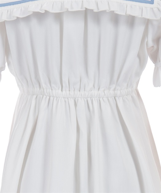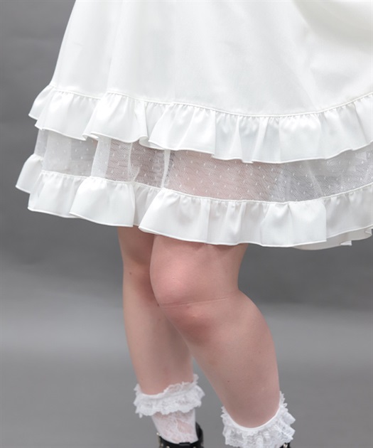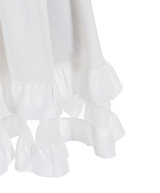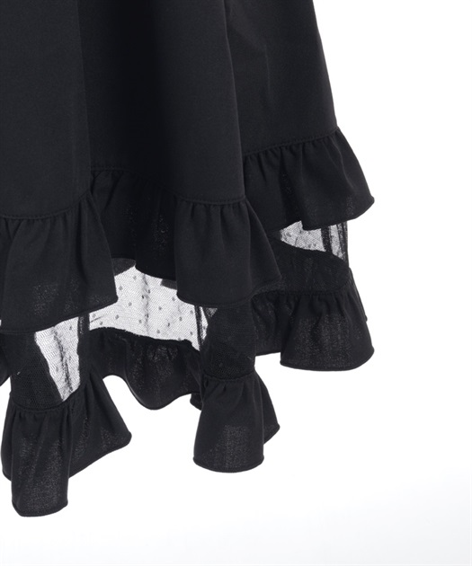 裾にあしらったチュールの透け感がアクセントになったワンピースです。