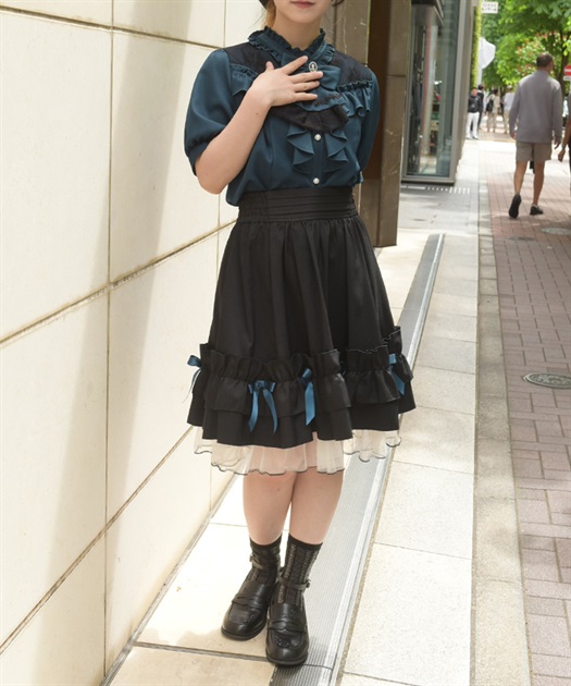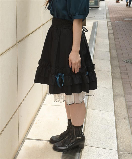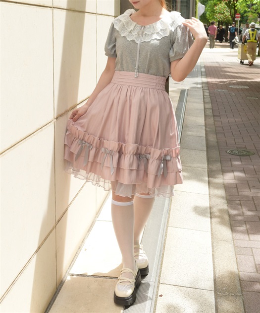サテンリボンフレアスカート