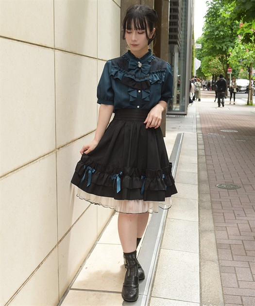 コンパクトなトップスを合わせてシルエットを引き立てたスタイルがおすすめ。ブラウスでまとめて世界観を統一した着こなしや、カットソーで抜け感を出したバランスも◎。甘さの中に構築的なラインを感じさせる、印象的なスタイリングが完成します。