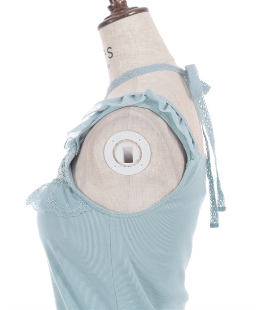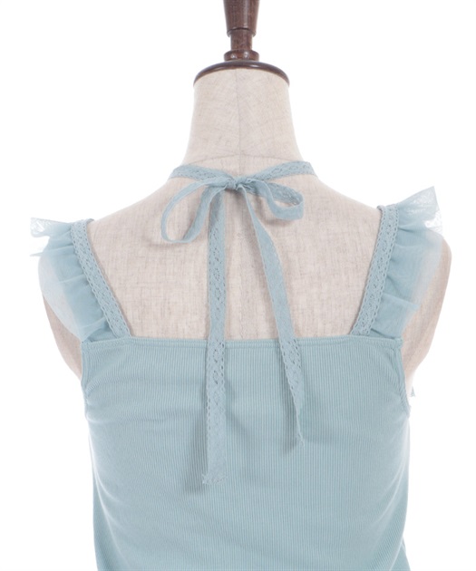 肩紐の細部までチュールフリルがあしらわれているため、見せるアウトタンクとしても。