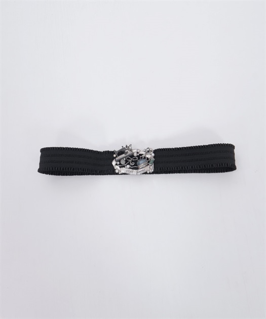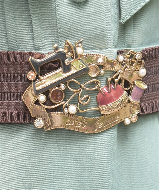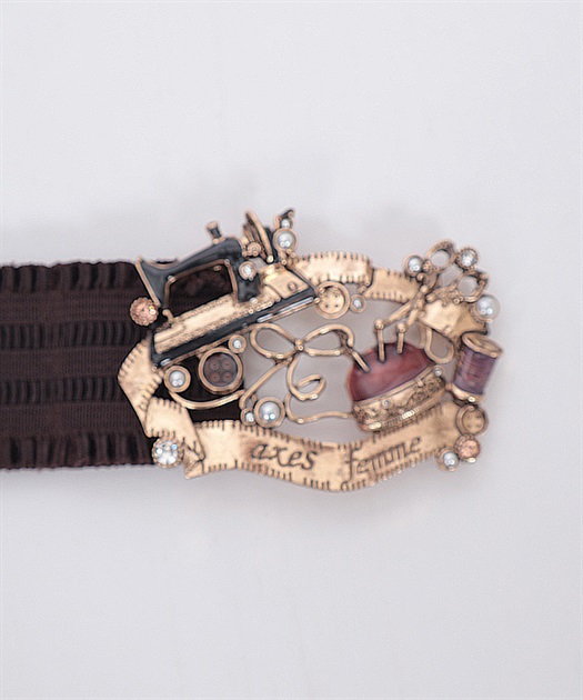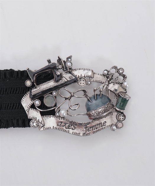 繊細なソーイングモチーフをあしらったクラシカルなゴムベルトです。