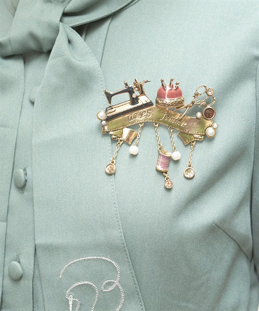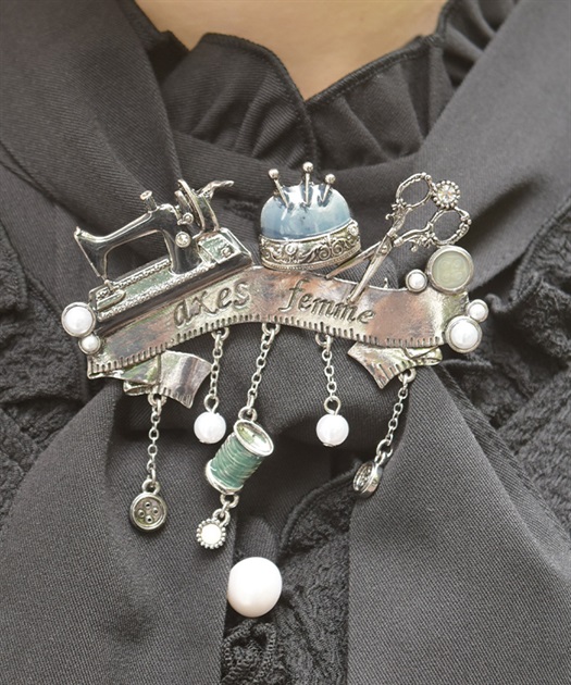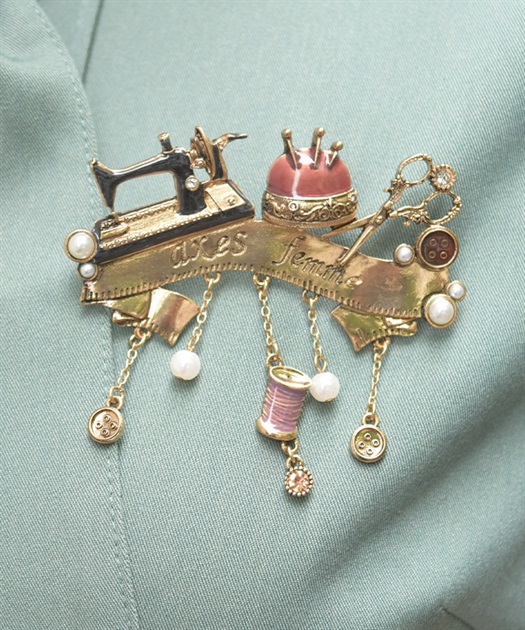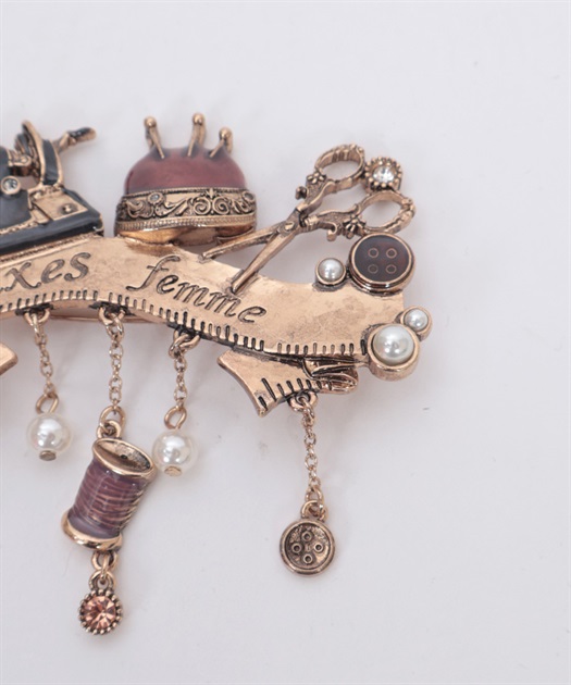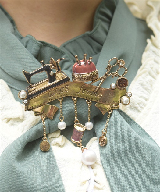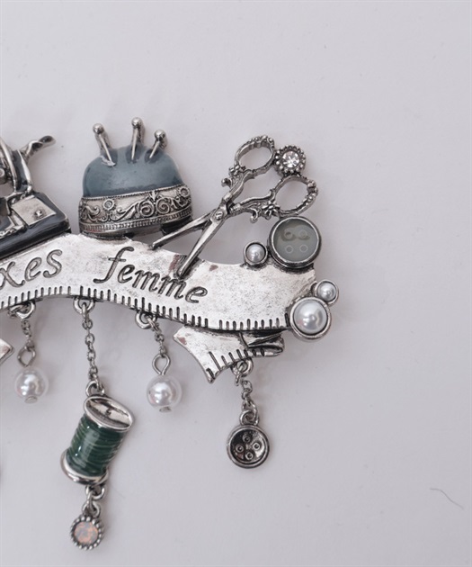 繊細なソーイングモチーフをあしらったクラシカルなブローチです。