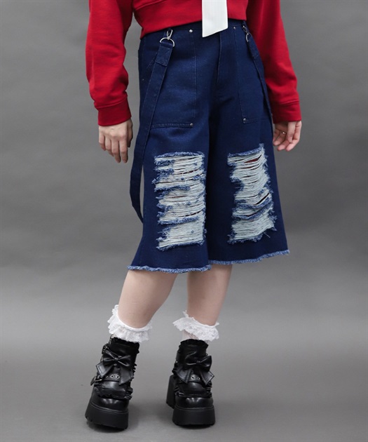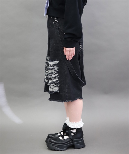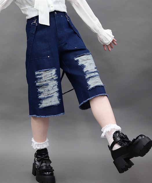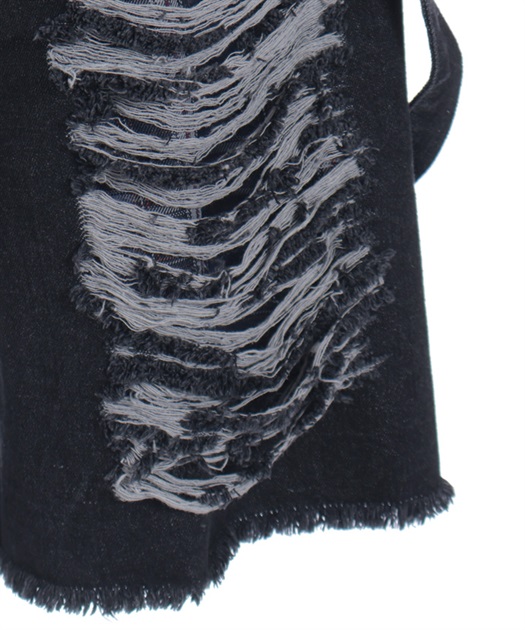 大胆に施したダメージ加工やルーズに垂らしたベルトでヴィンテージ感と辛口なアクセントをコーデに加えてくれるアイテムです。