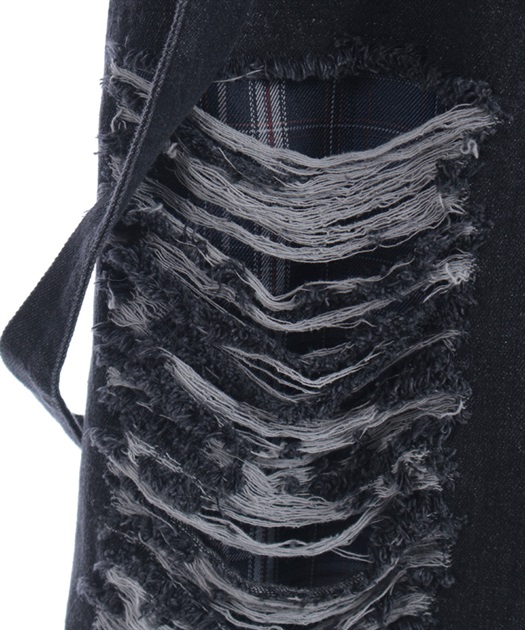 ダメージ部分には肌側にチェック生地をあしらい肌が透けない仕様になっています。